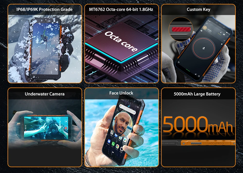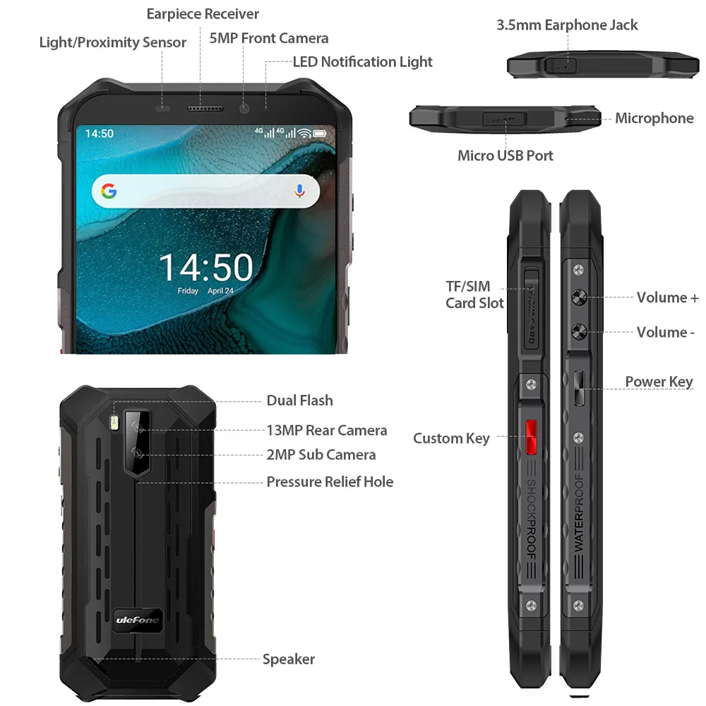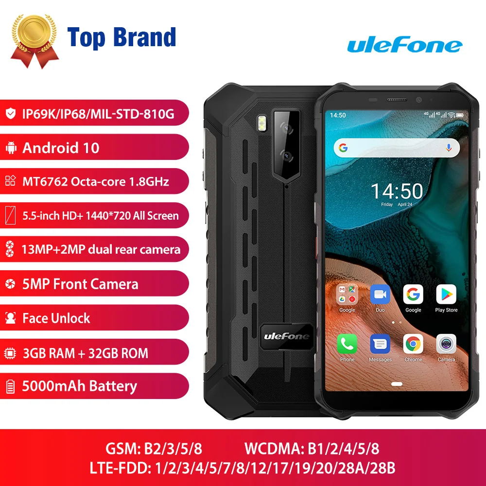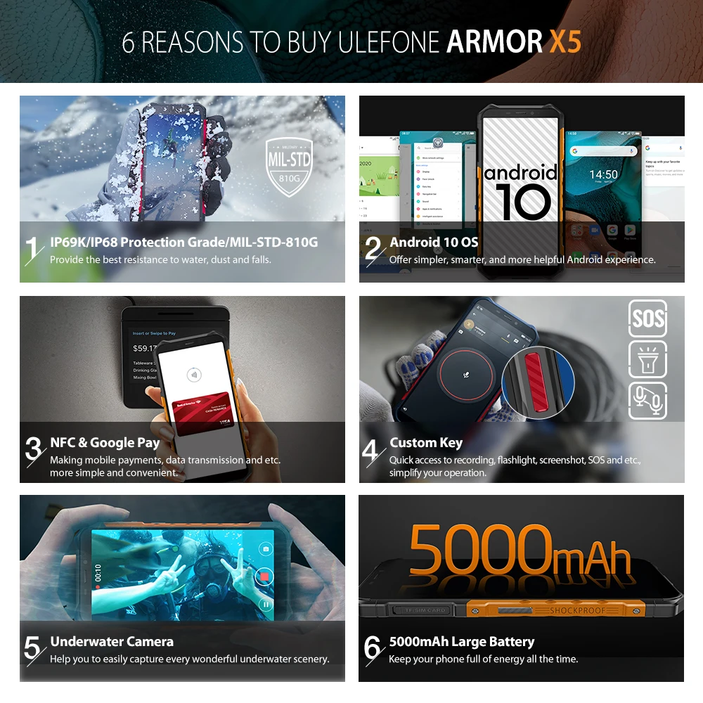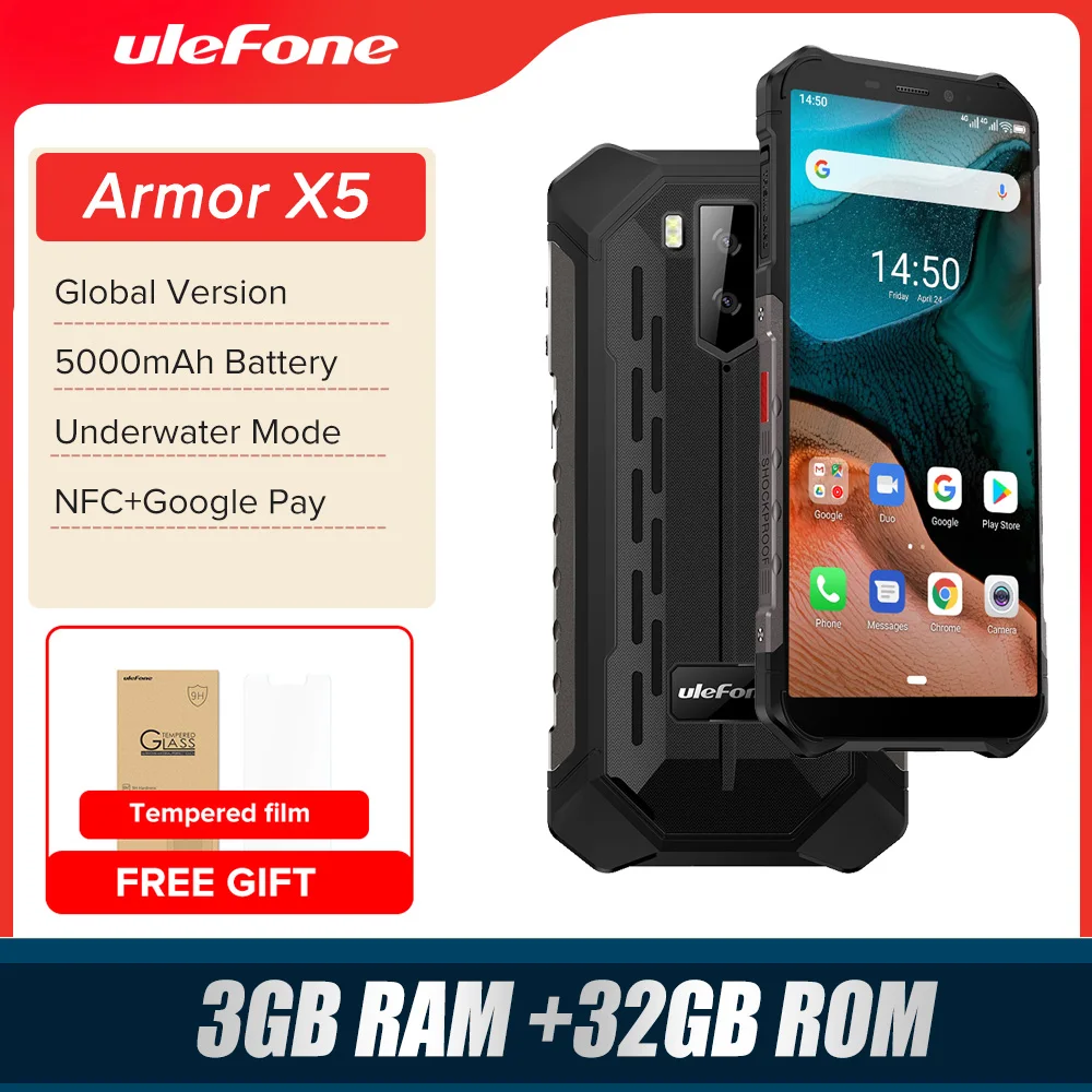 Comprar Ulefone-teléfono inteligente Armor X5, móvil resistente al agua, con Android 10, IP68, MT6762, 3GB de RAM, 32GB de rom, Octa core, NFC, 4G, LTE