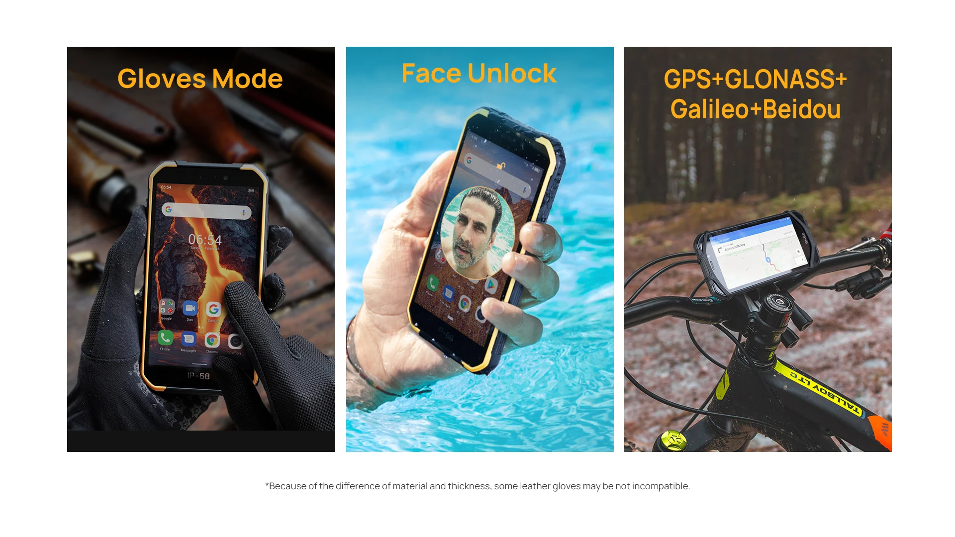 No es necesario quitarse los guantes para usar el teléfono cuando está trabajando o en invierno frío con el modo guantes. No solo es compatible con la mayoría de los guantes de pantalla táctil del mercado, sino también con algunos guantes de algodón comunes de 1,5mm de grosor y algunos guantes de cuero *.