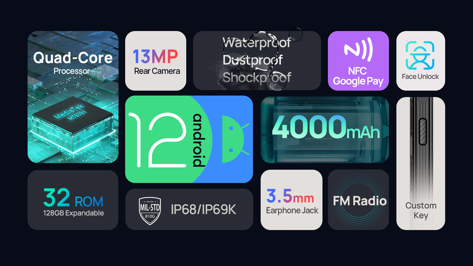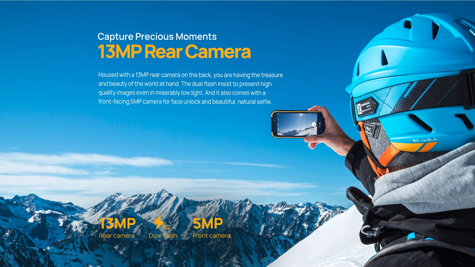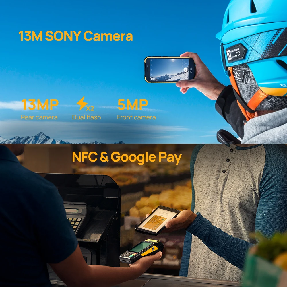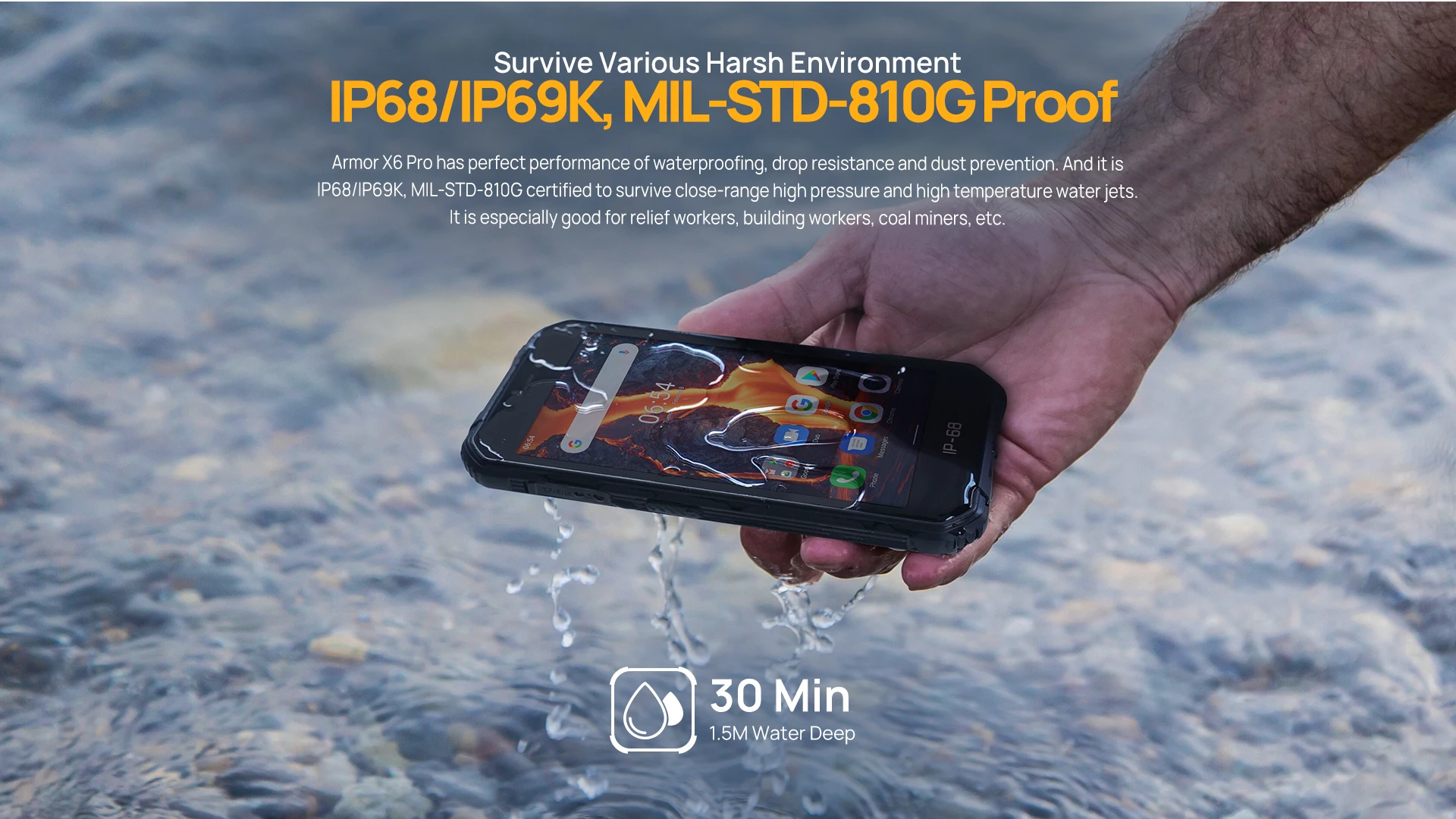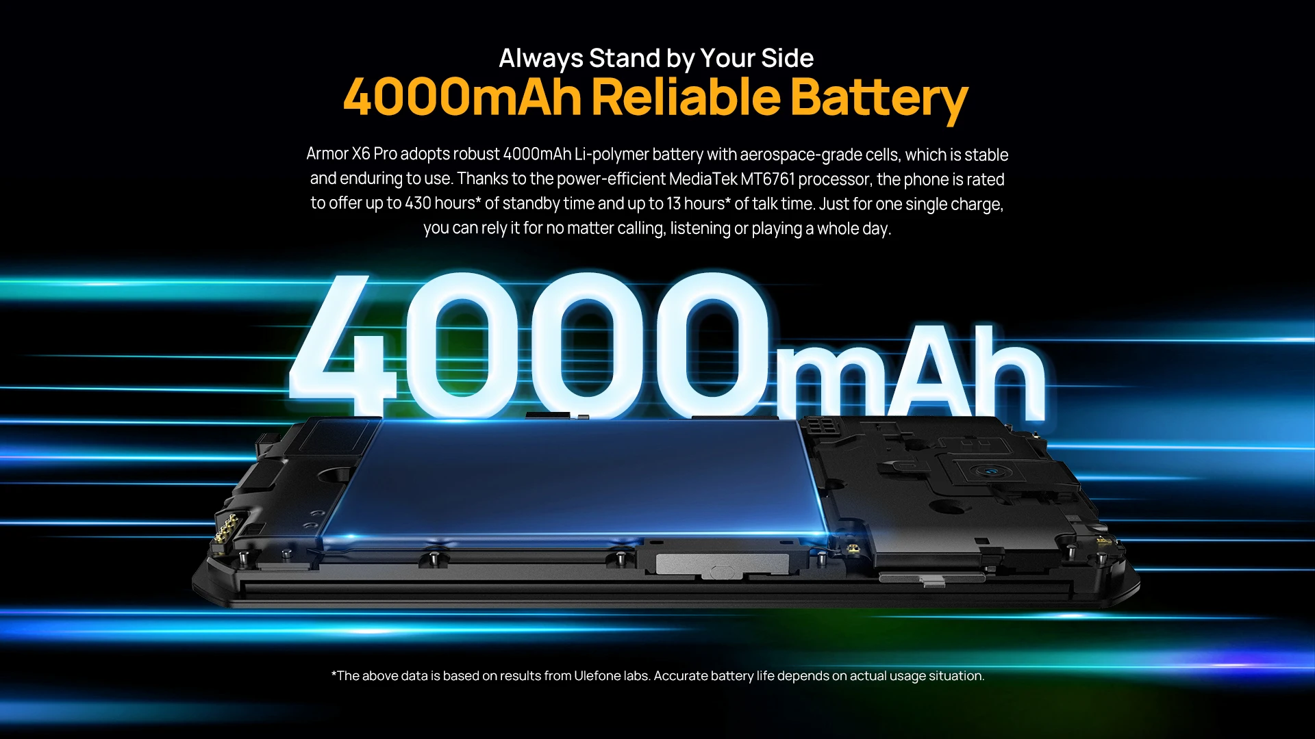 Armor X6 Pro adopta una robusta batería de polímero de litio de 4000mAh con celdas de grado aeroespacial, que es estable y duradera. Gracias al procesador MediaTek MT6761 de bajo consumo, el teléfono está clasificado para ofrecer hasta 430 horas * de tiempo de espera y hasta 13 horas * de tiempo de conversación. Con una sola carga, puede confiar en él sin importar si llama, escucha o juega durante todo un día.