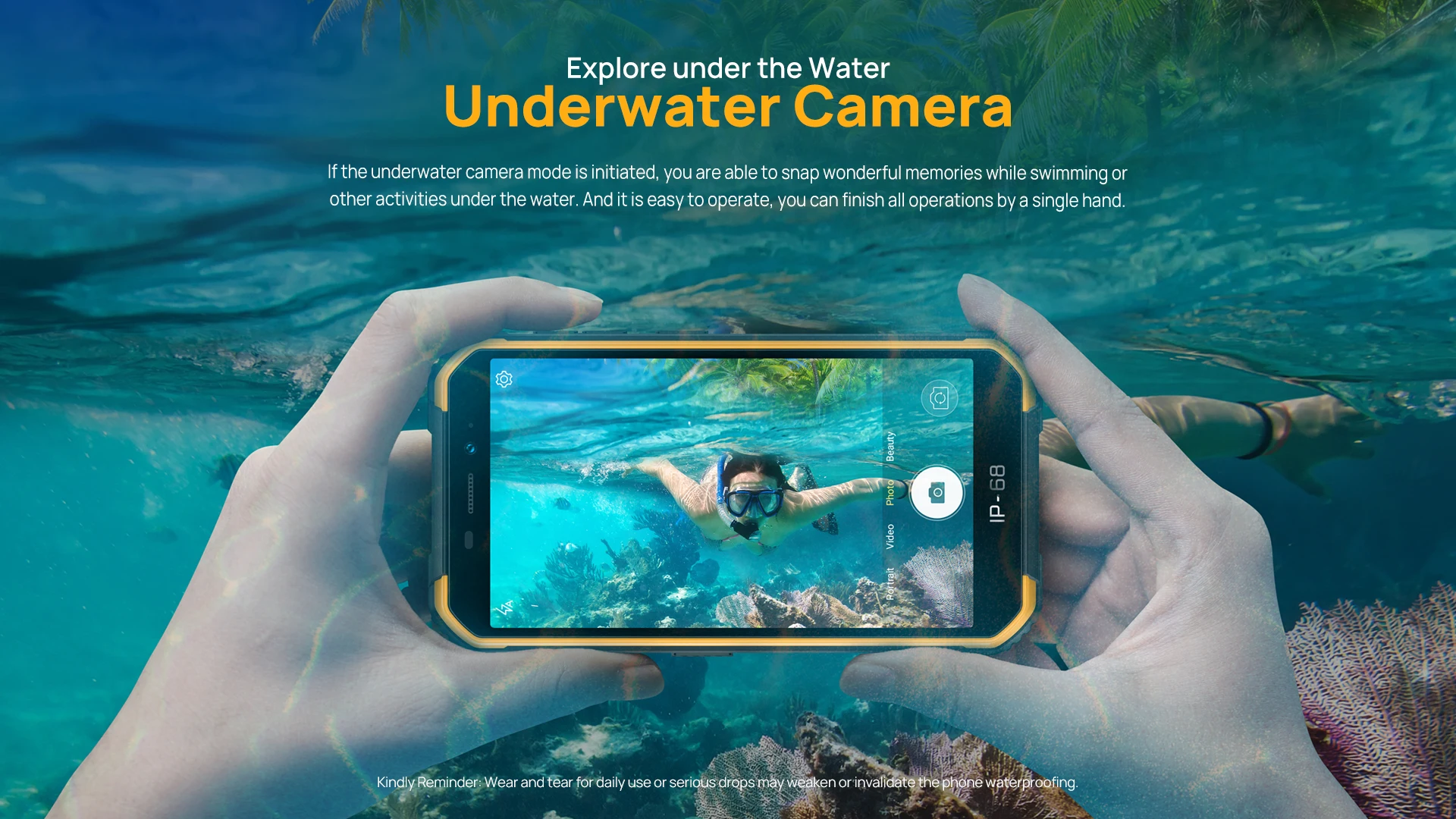 Si se inicia el modo de cámara submarina, podrá capturar recuerdos maravillosos mientras nada u otras actividades bajo el agua. Y es fácil de operar, puede terminar todas las operaciones con una sola mano.