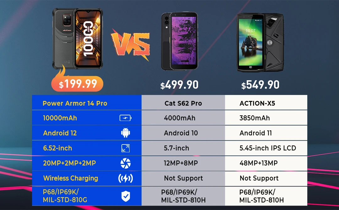 Comprar Ulefone-teléfono inteligente Power Armor 14 Pro resistente, 10000mAh, Android 12, resistente al agua, 128GB, carga inalámbrica, NFC, versión Global