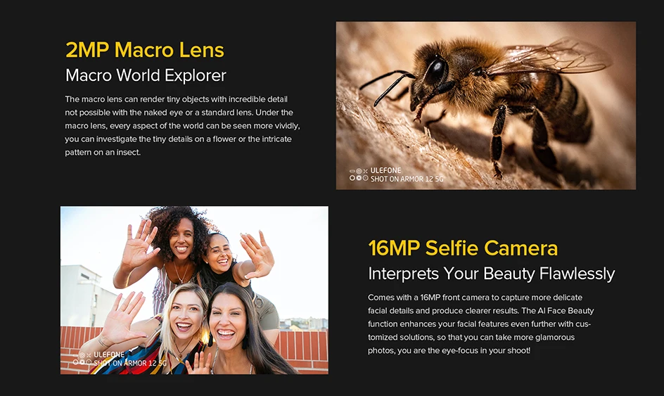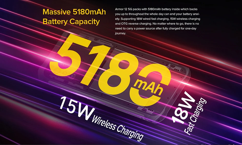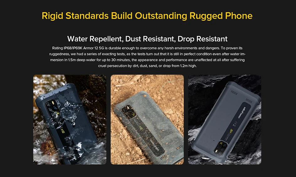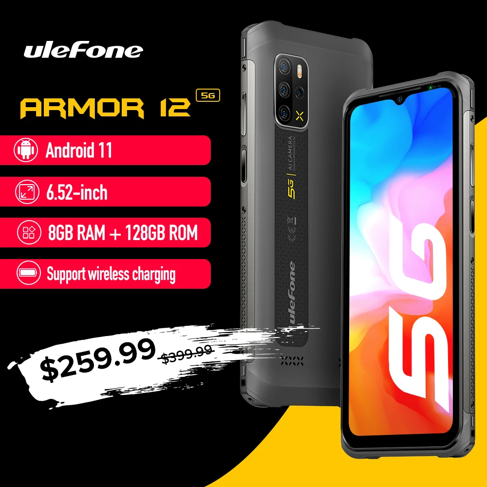 Comprar Ulefone-Teléfono móvil resistente al agua Armor 12, smartphone de versión global de red 5G, sistema Android 11, memoria de 8GB +128 GB, batería de 5180 mAh, pantalla de 6,52", carga inalámbrica NFC