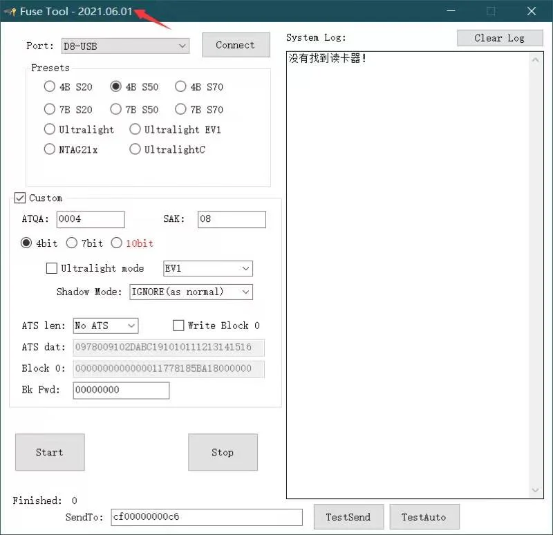 El usuario puede personalizar ATQA con una longitud de dos bytes, que es lo opuesto al resultado leído por Pm3.Cabe señalar que si la longitud del byte de la tarjeta 4 bytes, entonces debe ser 004X (pedido de Pm3)