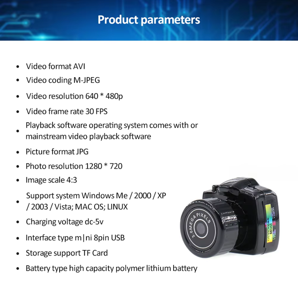 Ultra Mini cámara portátil HD grabadora de Audio y vídeo cámara web Y2000 videocámara deportiva DV DVR protección de seguridad cámara de cuerpo pequeño