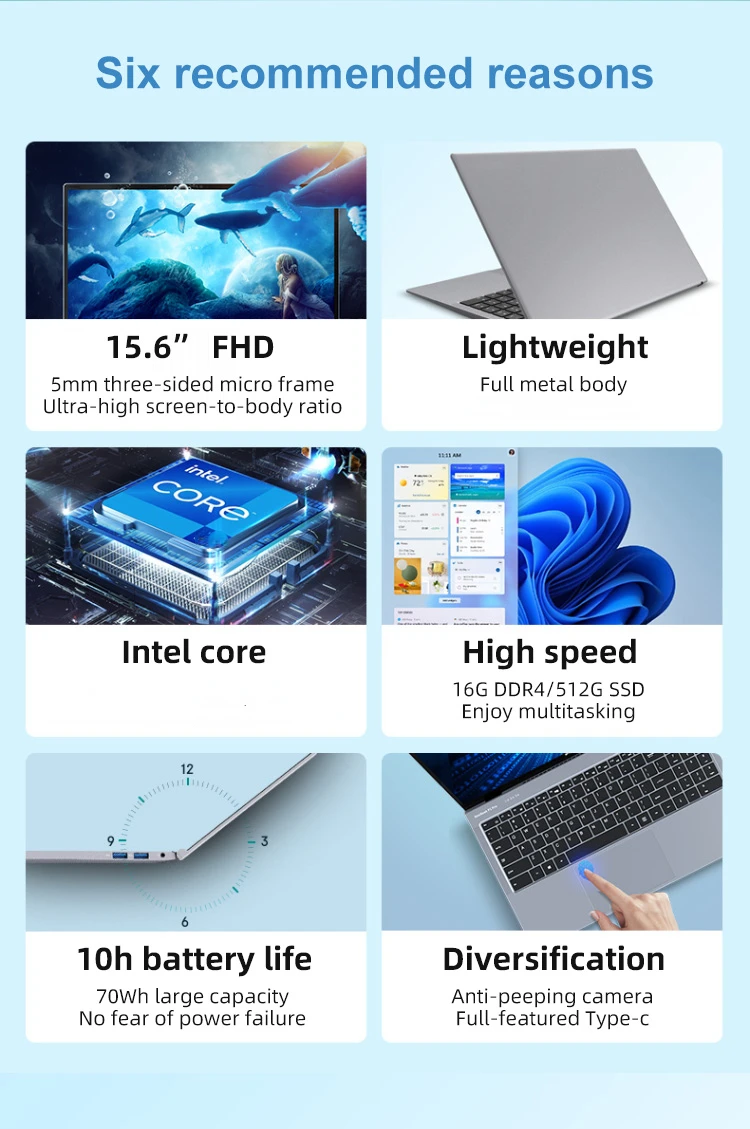 Comprar Ultrabook-ordenador portátil de Metal para juegos, Notebook de oficina y negocios con Windows 10, 15,6 pulgadas, 10. ª generación, Intel Core I3 1005G1, 12GB + 1TB, mujer