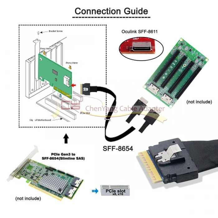 Comprar Ultradelgado 4,0 SFF-8654 8i 74pin a SFF-8611 Ultraport Slimline SAS PCI-E Dual Oculink