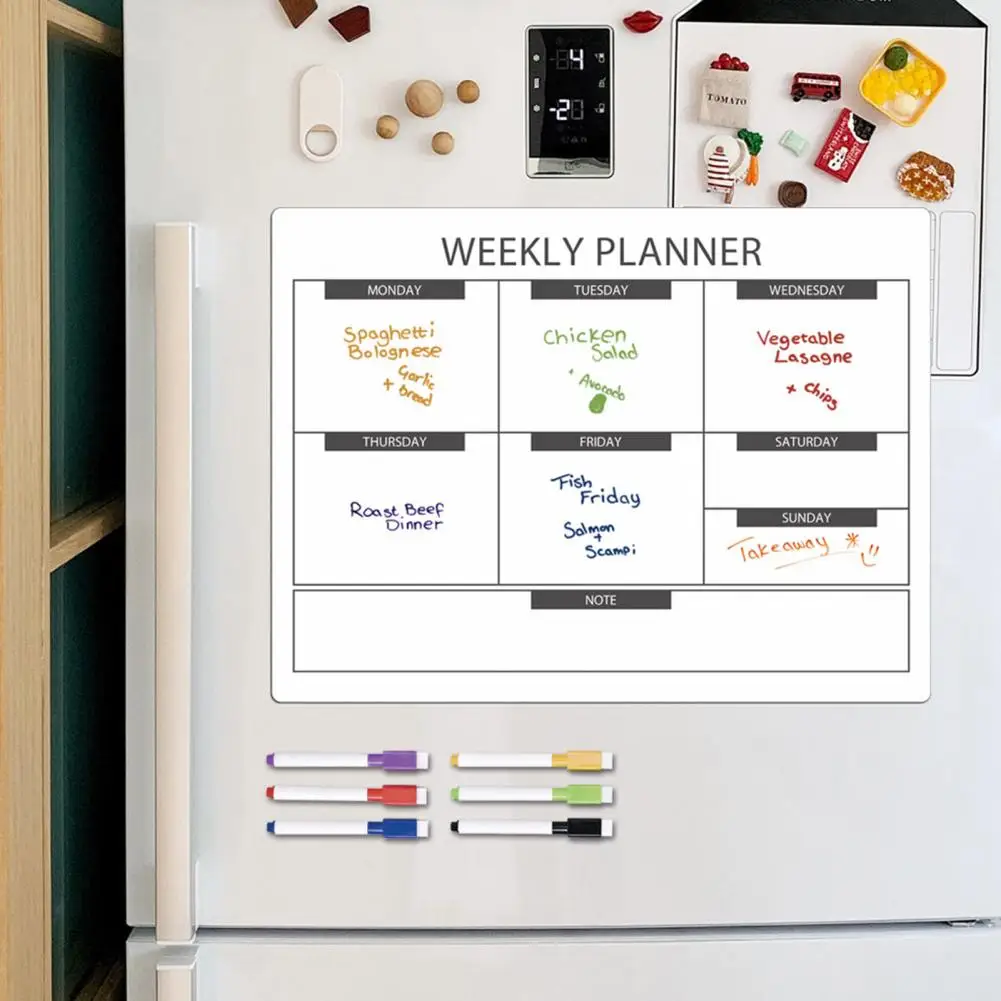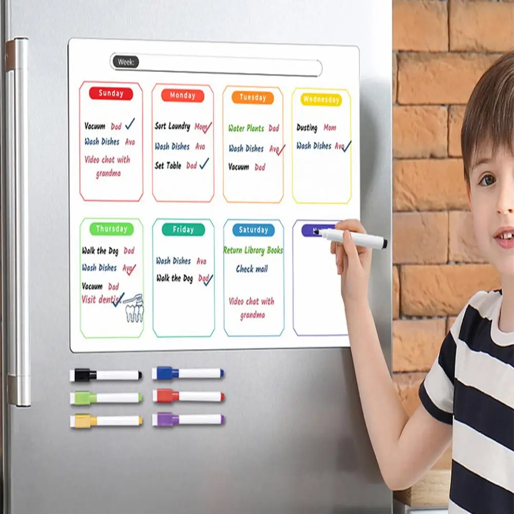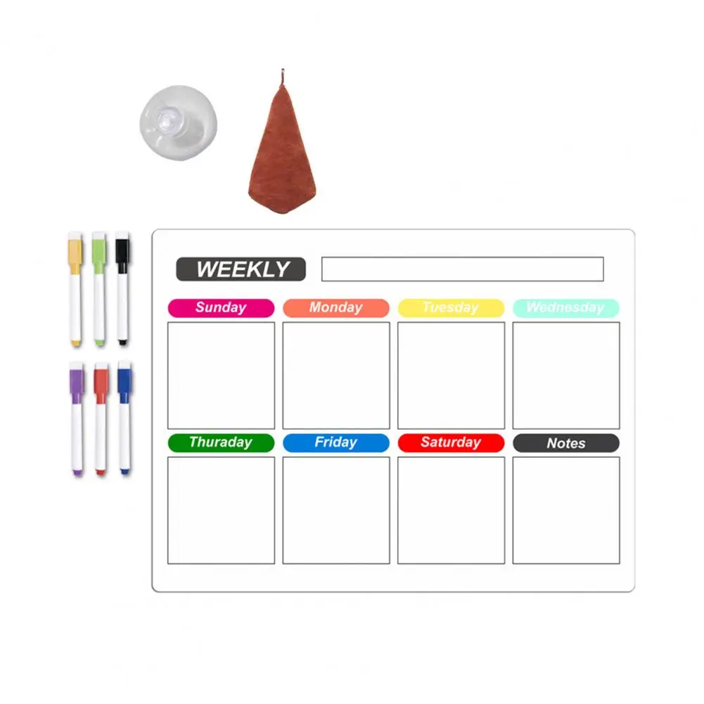 Un juego incluye una pizarra magnética y seis bolígrafos, ganchos y toallas. Borrable y reutilizable.
