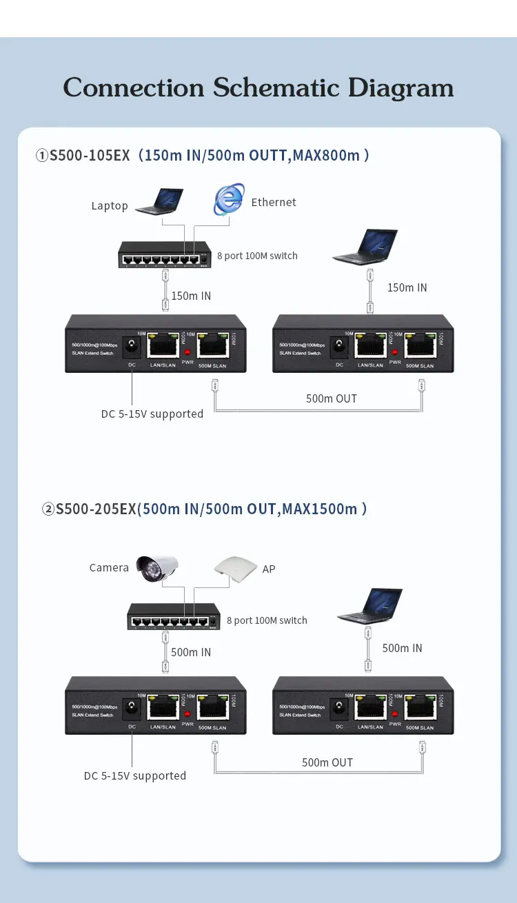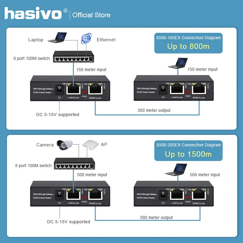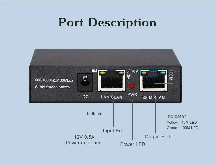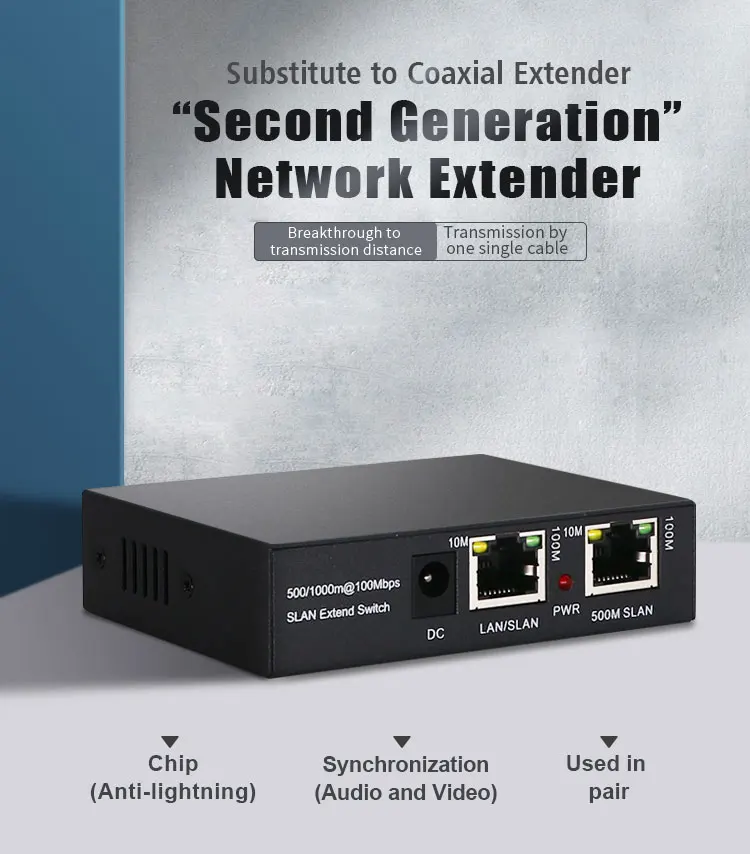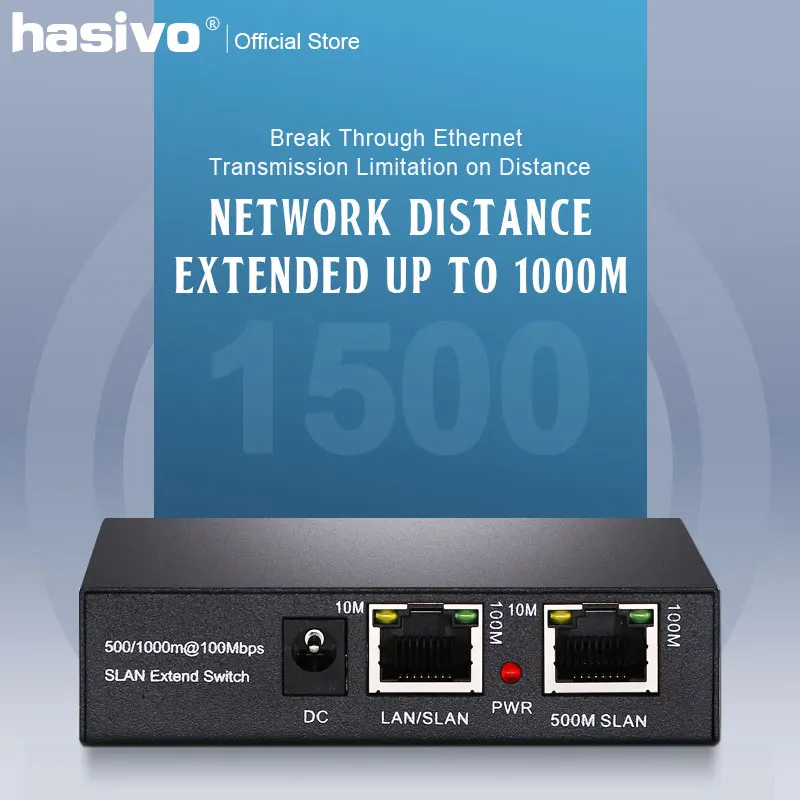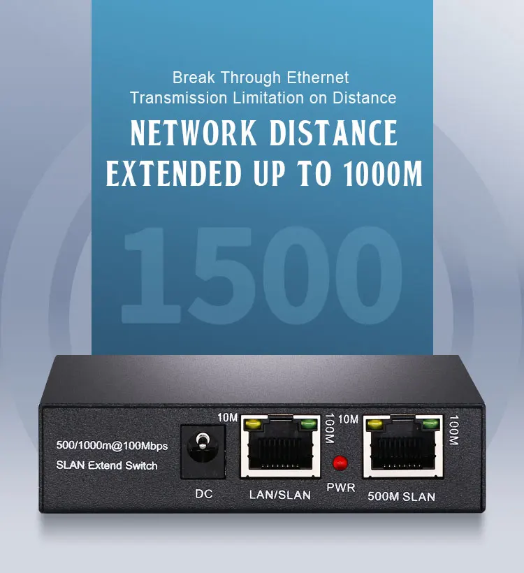 Comprar Un par de extensor de interruptor Ethernet de red de 500 o 1000 metros, 1 puerto de 10/100M, entrada Rj45, 1 puerto de 10/100M, Rj45 0utput