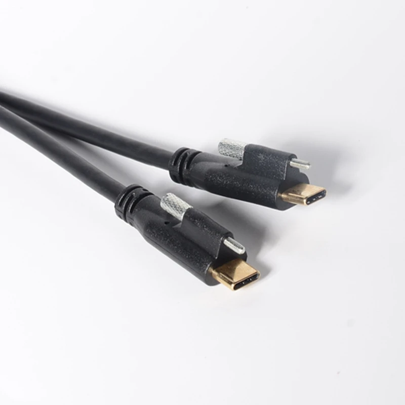 Comprar Un solo tornillo de bloqueo USB 3,1 tipo C macho a macho, Cable de extensión de carga de datos usb c a c, 30cm, 60cm, 1m, 1,8 m, 1FT, 2ft, 3ft, 6ft