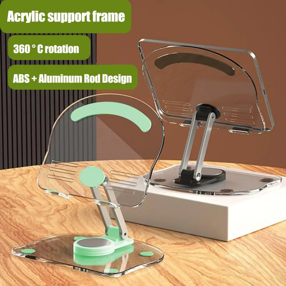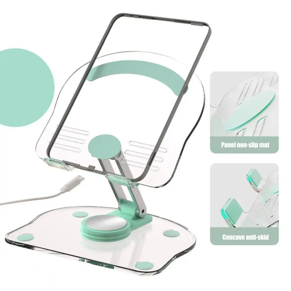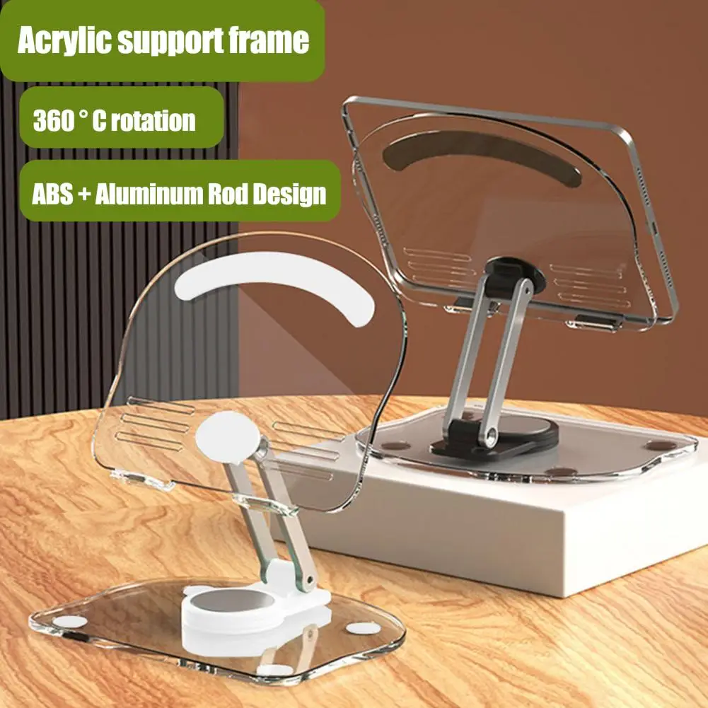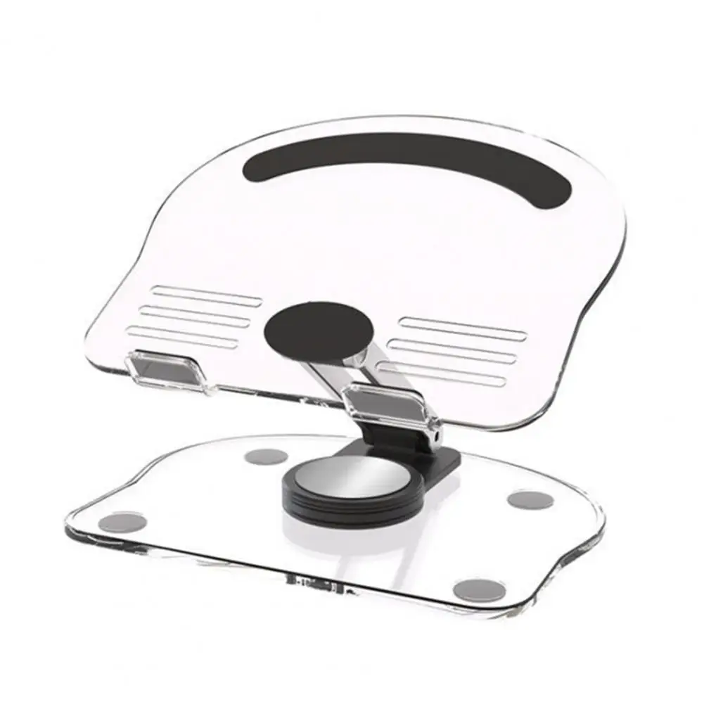 Soporte para tableta versátil con diseño giratorio para ángulos de visión ajustables.