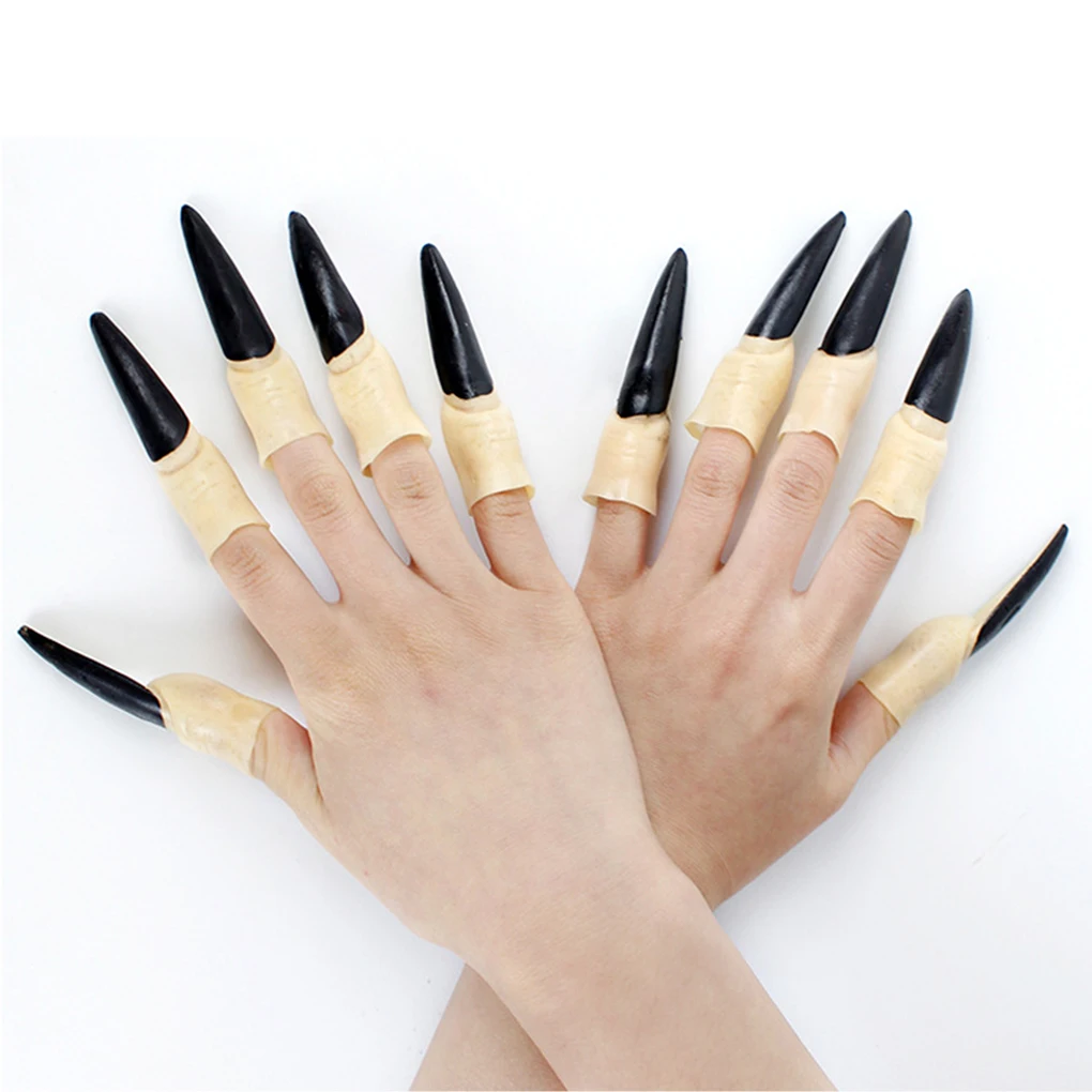 Uñas fantasmas: para las fiestas de Halloween, estas uñas postizas largas con diseños fantasmales son los mejores suministros para fiestas para un aspecto espeluznante.
