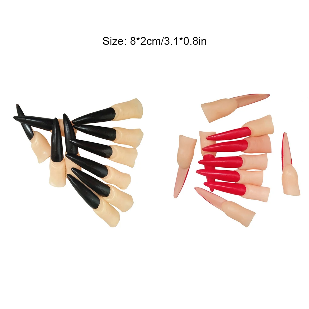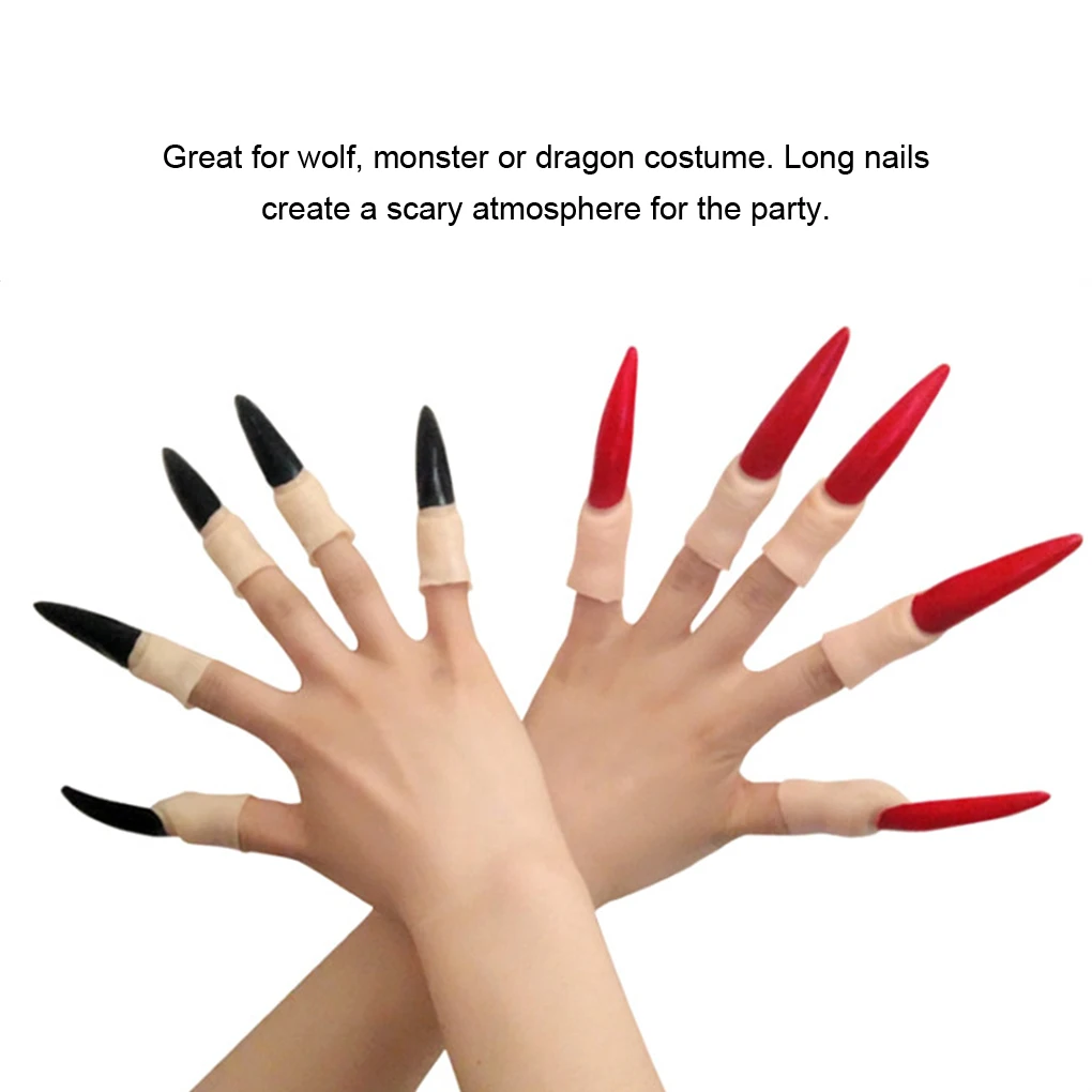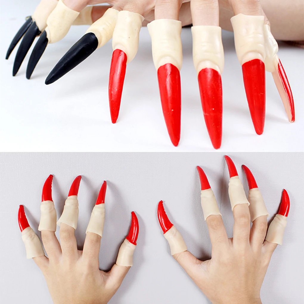 Comprar Uñas postizas de goma para dedos, 10 piezas, fáciles de usar y quitar, uñas rojas de aspecto impresionante y hermoso (8x2cm)
