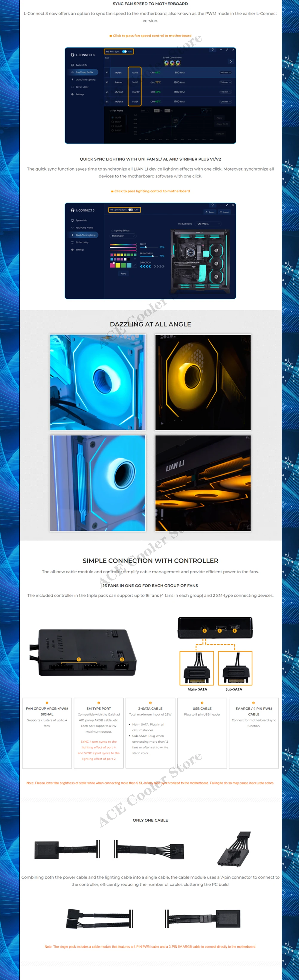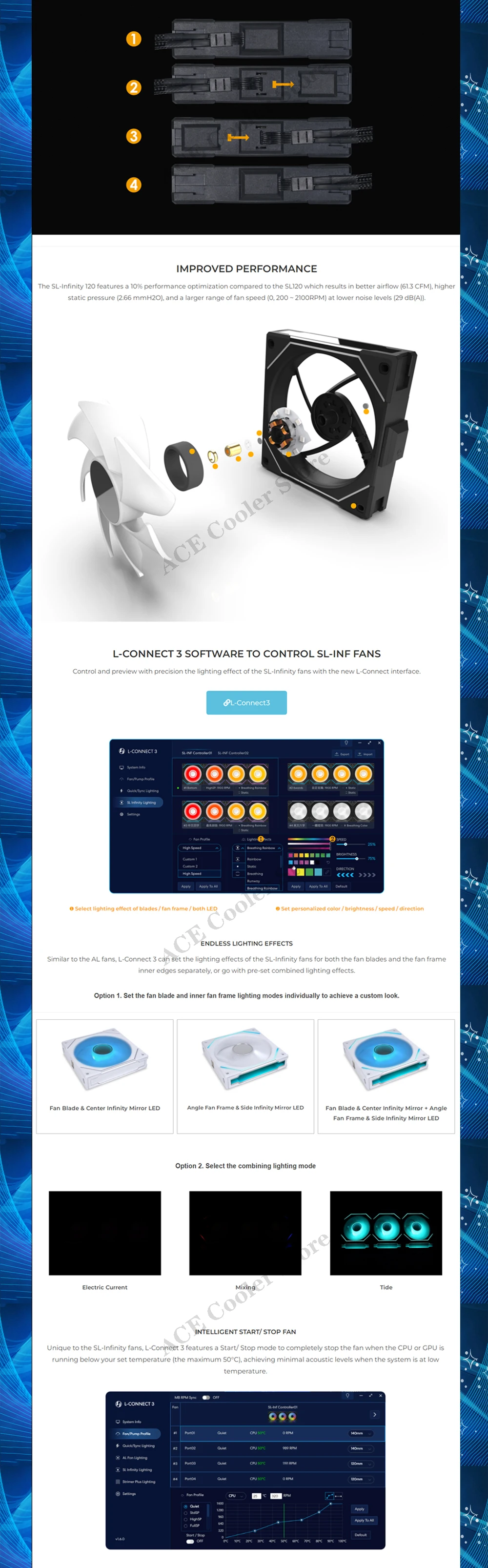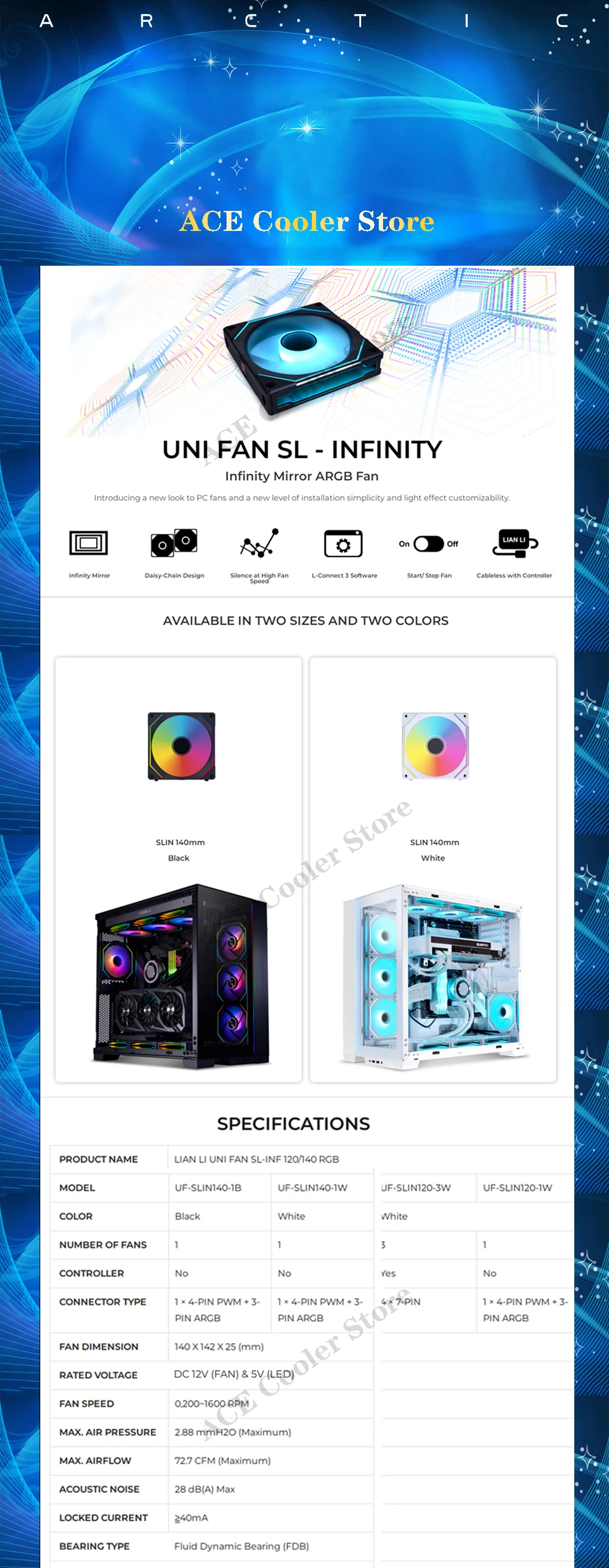 Comprar UNI-ventilador LIAN LI UNI SL Infinity 140, ARGB de 14CM con cadena de margaritas de espejo, sistema l-connect 3,0, Color negro/blanco