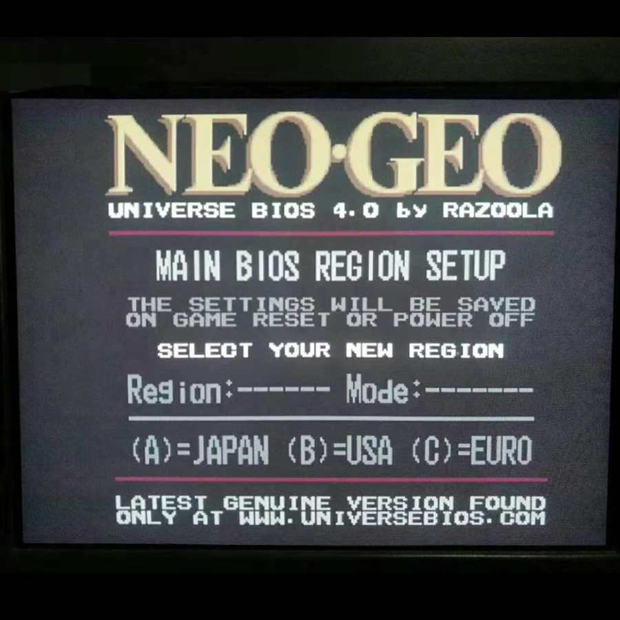 Le permite cambiar la región original de su consola o su ranura mvs por Europa, EE. UU. o Japón y cambiar el modo de la consola aes en consola o arcade.