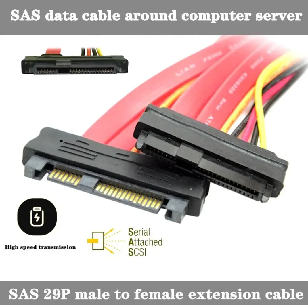 Cable SAS de disco duro SFF-8482 Cable de extensión macho a hembra de 29 pines