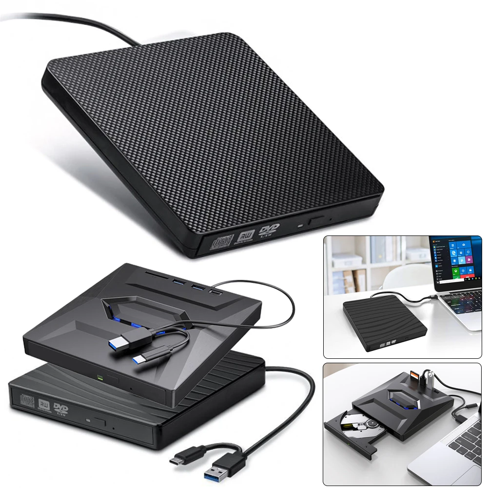 Comprar Unidad de DVD USB 3,0 tipo C, carcasa de unidades ópticas externas con puertos SD/TF, grabador de CD para Macbook, portátil y PC, 5 en 1