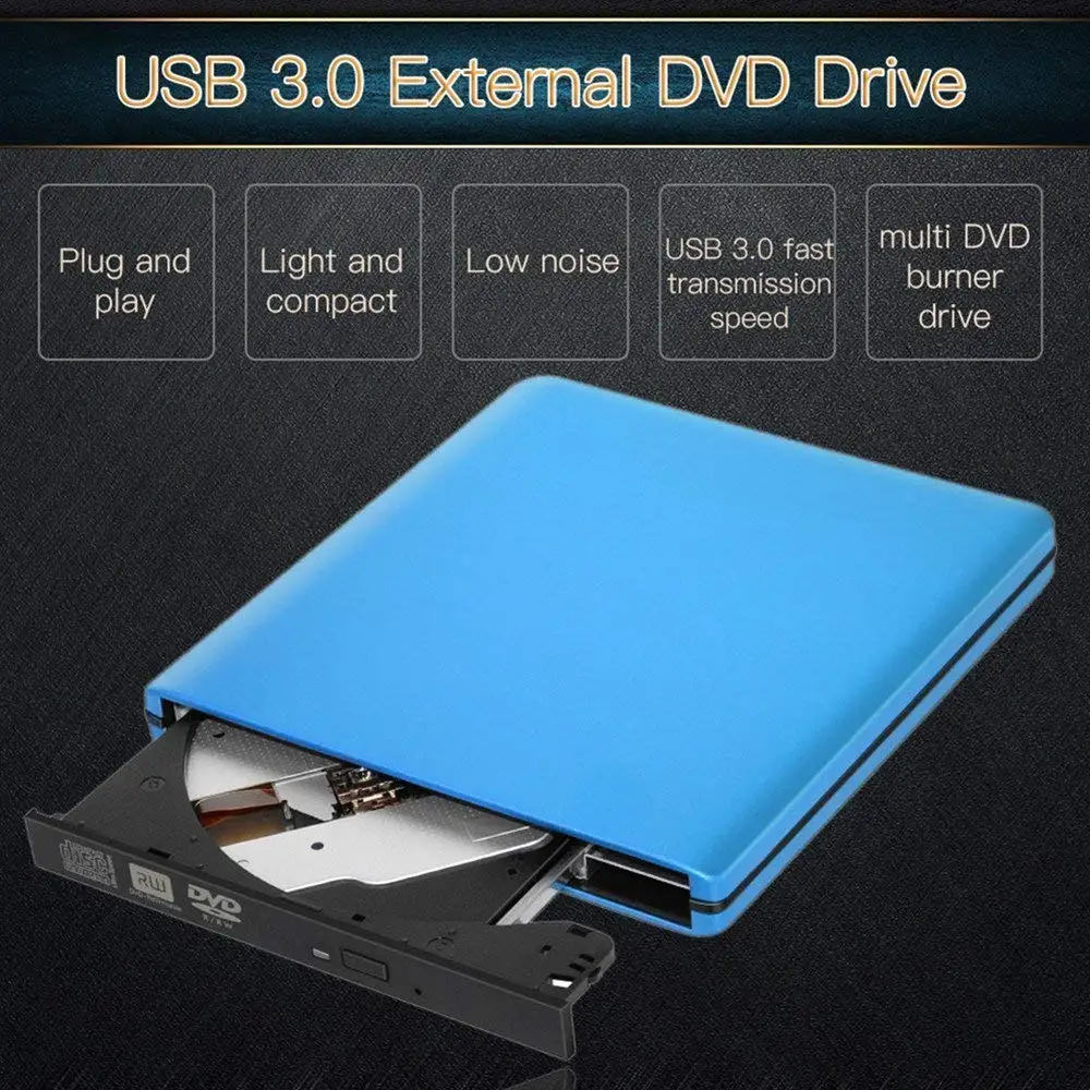 Comprar Unidad de DVD USB 3,0, unidad de grabación de CD, grabadora de lectura y escritura de alta velocidad, reproductor de DVD-RW externo, lector de escritura para MAC
