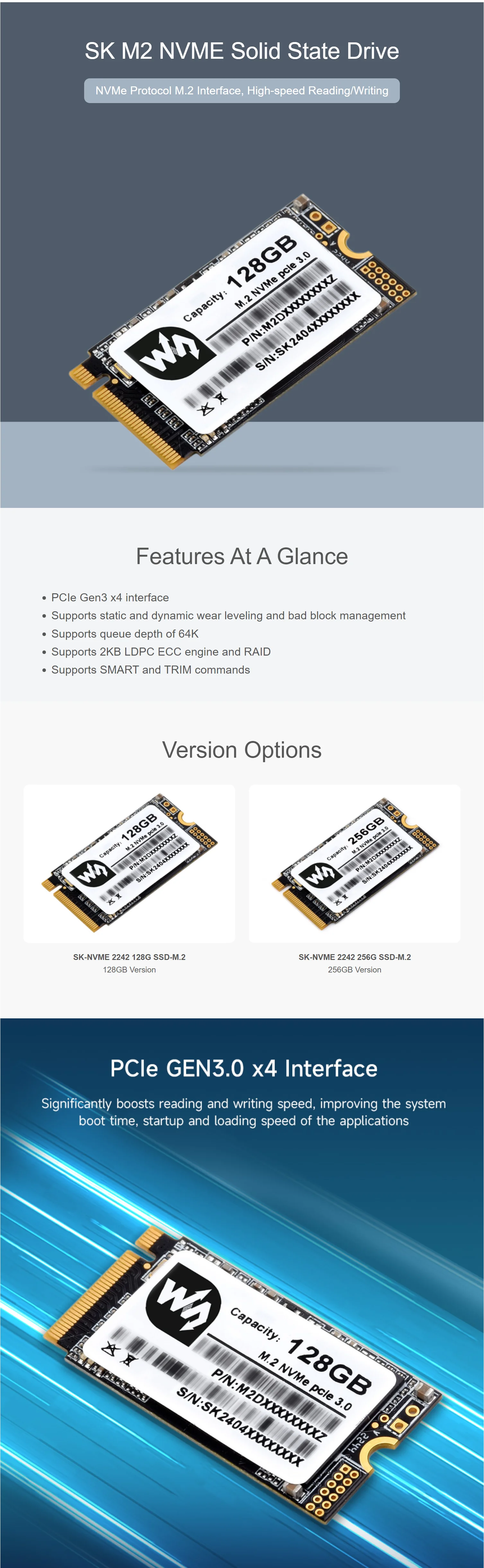 Unidad de estado sólido de alta velocidad SK M.2 NVME 2242 512 GB/128 GB / 256 GB, memoria flash TLC 3D de alta calidad, lectura/escritura de alta velocidad, más confiable y duradera
