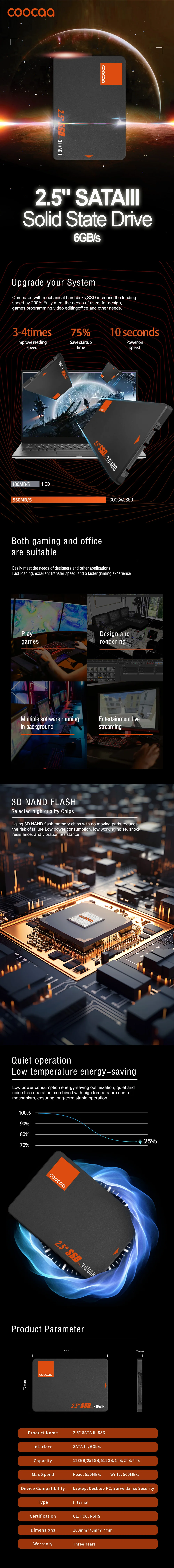 Comprar Unidad de estado sólido COOCAA 256G 512G 2,5 "SATA3 SSD 128G 240G 1TB disco duro SATA 960G 2TB SSD interno para ordenador portátil PC de escritorio