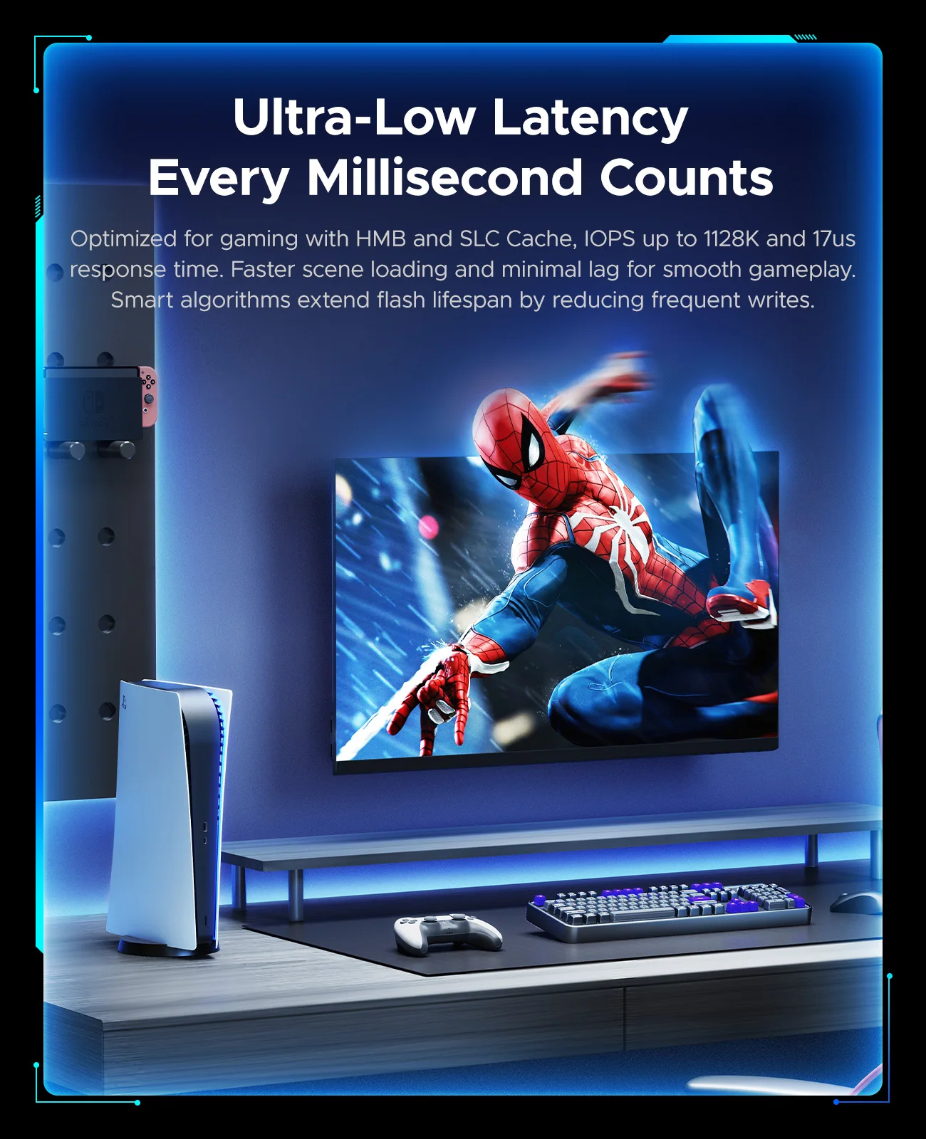 Velocidades locas de hasta 7450 MB/ofrece un rendimiento de primer nivel con tiempos de carga ridiculosamente cortos para la experiencia de juego de élite que estabas esperando.