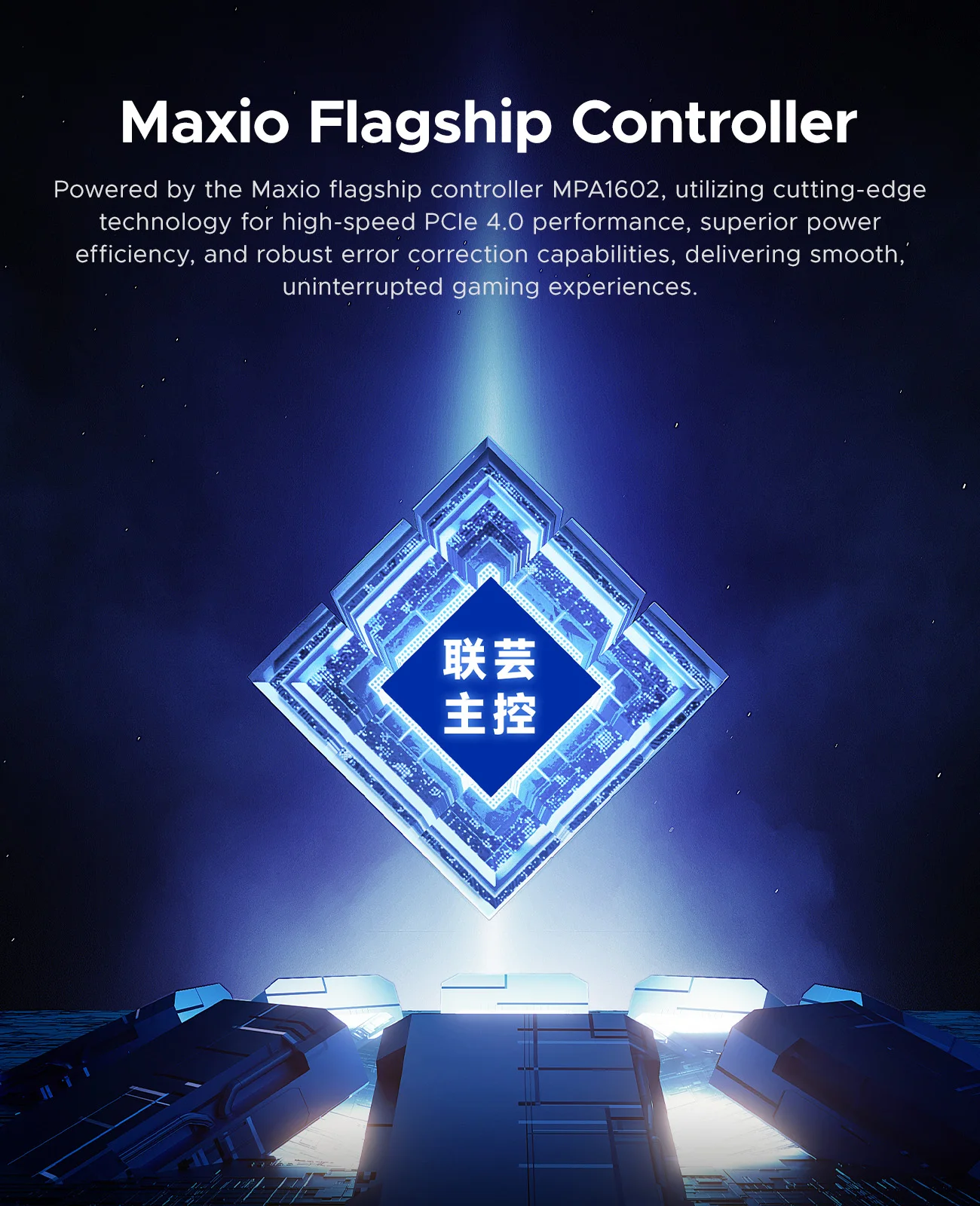 Impulsado por el controlador insignia Maxio MPA1602, que utiliza tecnología de punta para un rendimiento PCle 4.0 de alta velocidad, una eficiencia energética superior y sólidas capacidades de corrección de errores, brindando experiencias de juego fluidas e ininterrumpidas.