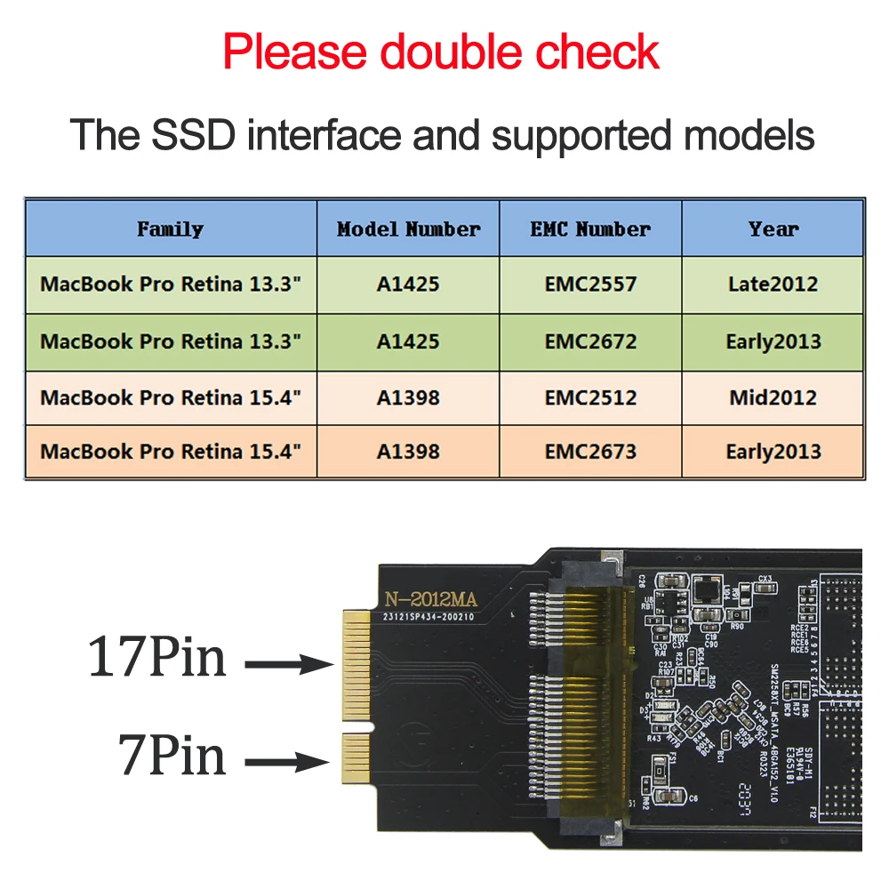 Comprar Unidad de estado sólido para Macbook Pro, dispositivo de almacenamiento de 128GB, 25GB, 512GB, 1TB, Retina de 13 pulgadas, A1425, 15 pulgadas, A1398, MBP A1398, A1425, 2012, 2013