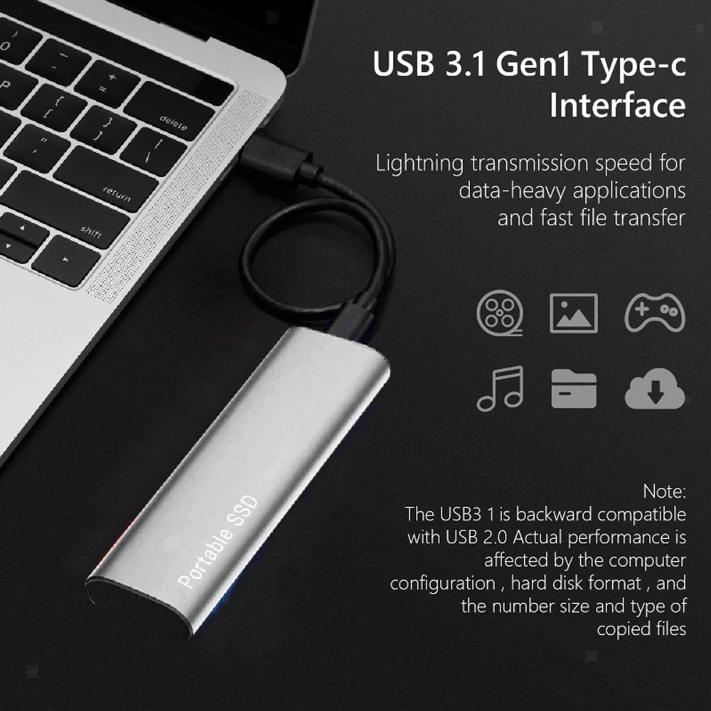 Comprar Unidad de estado sólido portátil SSD USB 3,1 de alta velocidad, disco duro externo tipo C para ordenador portátil, PC y Mac, 1TB, 2TB