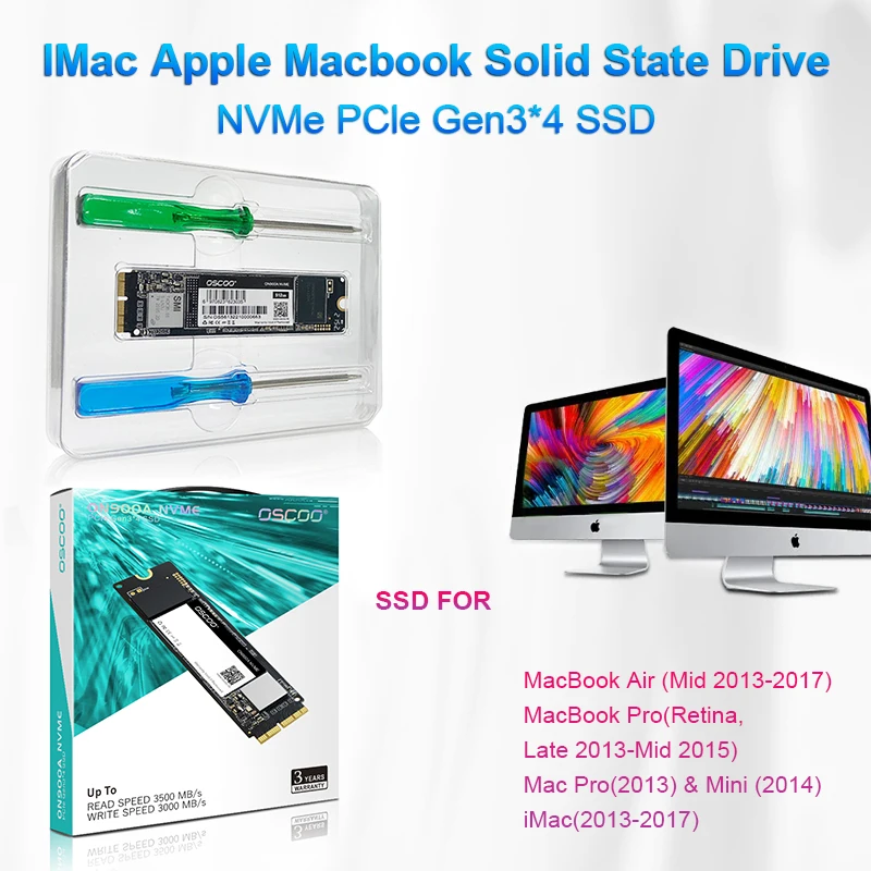OSCOO 2TB MAC SSD NVMe PCIe Gen3x4 3D NAND TLC SSD interno Compatible con Apple MacBook Air (2013-2015, 2017), MacBook Pro (2013-2015), iMac (2013-2019), Mac Pro (2013), Mac Mini (2014)
