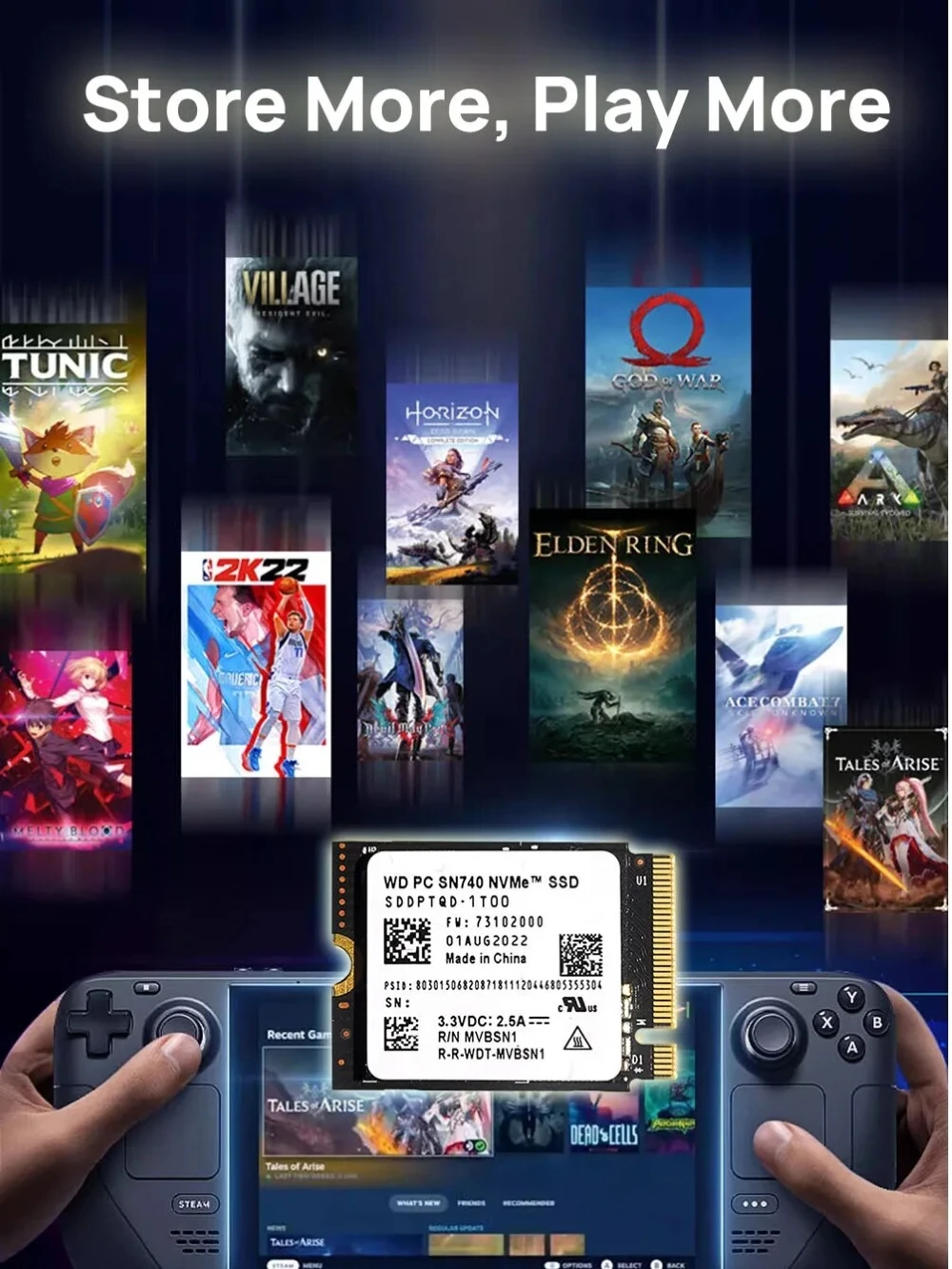 【Ajuste perfecto para Steam Deck】El tamaño (22 mm x 30 mm) es compatible con las computadoras portátiles Dell HP Lenovo Steam Deck y Surface (no funciona con SP8). Logre un juego completamente inmersivo con ancho de banda y rendimiento sostenidos de alto rendimiento para aplicaciones de servicio pesado en juegos, gráficos y análisis de datos.
