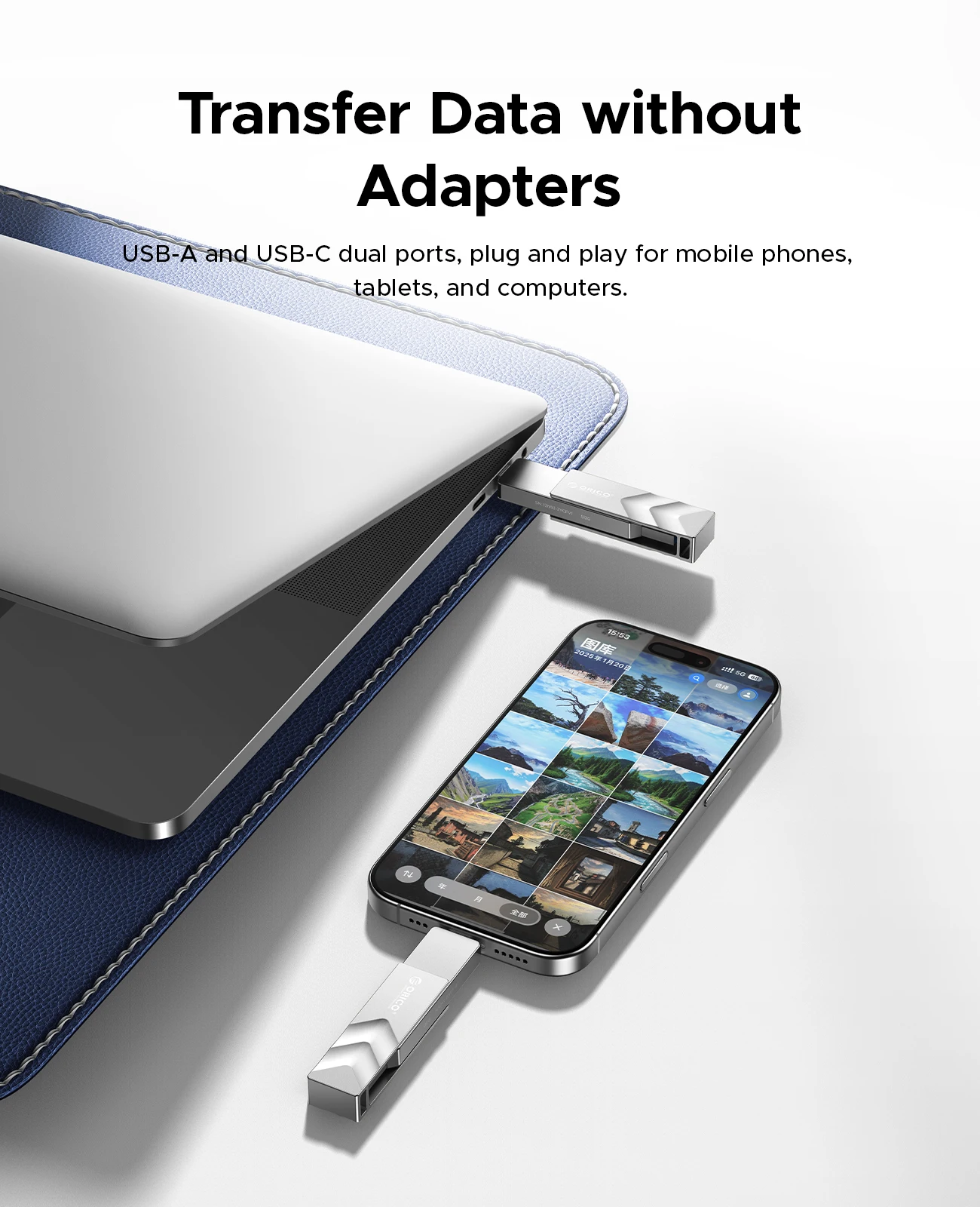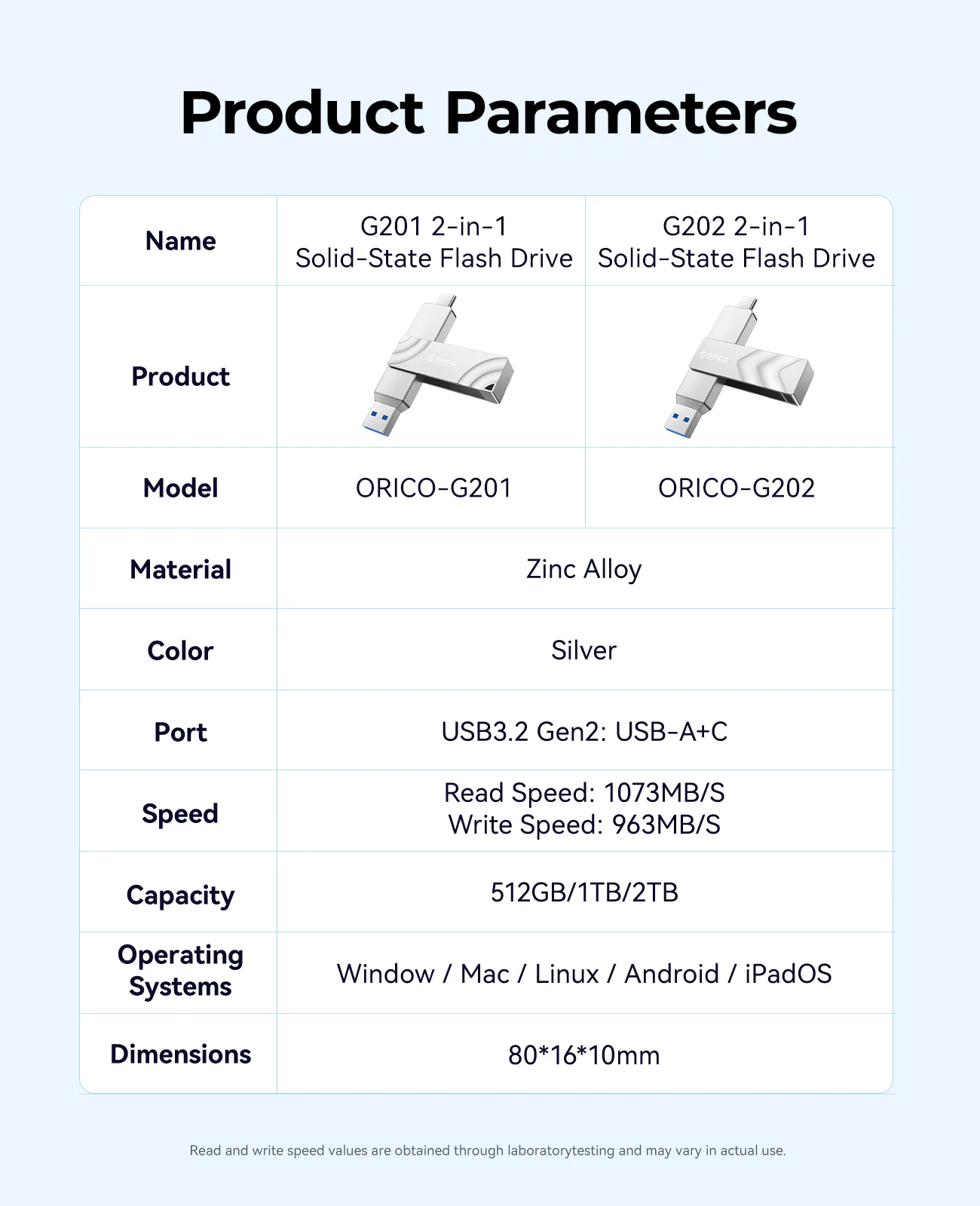 Unidad flash dual ORICO de 512 GB 2 en 1 USB C/A 3,2 Gen2 Velocidad de unidad flash de hasta 10 Gbps 1073 MB/s para iPhone 15/Android/Tablet/portátil
