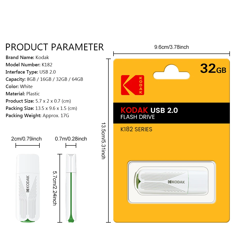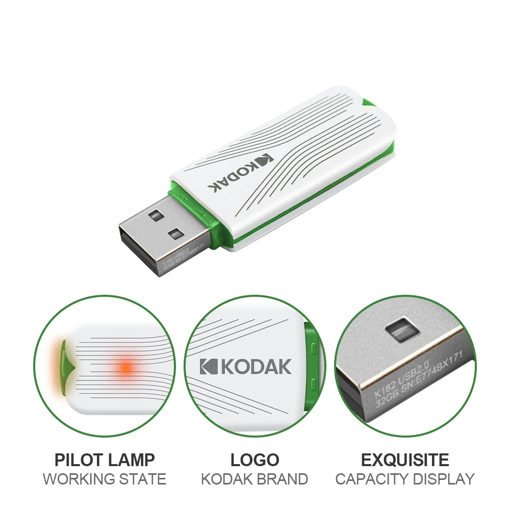 Comprar Unidad Flash KODAK Original K182 U disco USB2.0 16GB 32GB 64GB USB para coche 128GB 256gb 512GB velocidad 100MB/s cordón de cuero