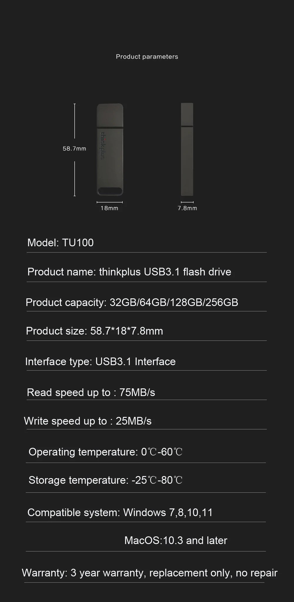 Comprar Unidad Flash Lenovo Thinkplus TU100 USB3.1, 32GB, 64GB, 128GB, 256GB, 512GB, 1TB, llave USB 3,1, disco U, unidad de bolígrafo de Metal portátil