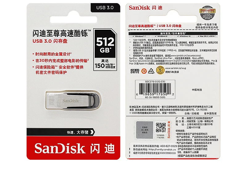 Unidad flash SanDisk USB 3.0 CZ73 Unidad de bolígrafo de hasta 150 Mb/s 16 GB 32 GB 64 GB Unidad de alta calidad 128 GB 256 GB 512 GB USB Una memoria de disco U para computadora portátil computadora de escritorio