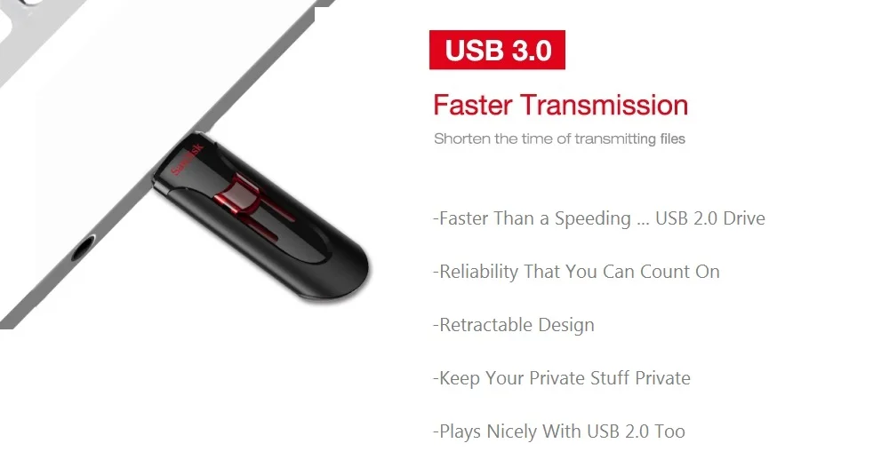 La unidad flash SanDisk Ultra Flair USB 3.0 es compatible con versiones anteriores de USB 2.0, por lo que puede conectarla a cualquier puerto USB 2.0 o 3.0.