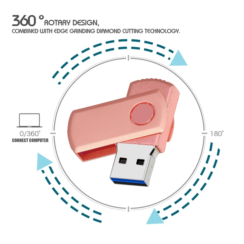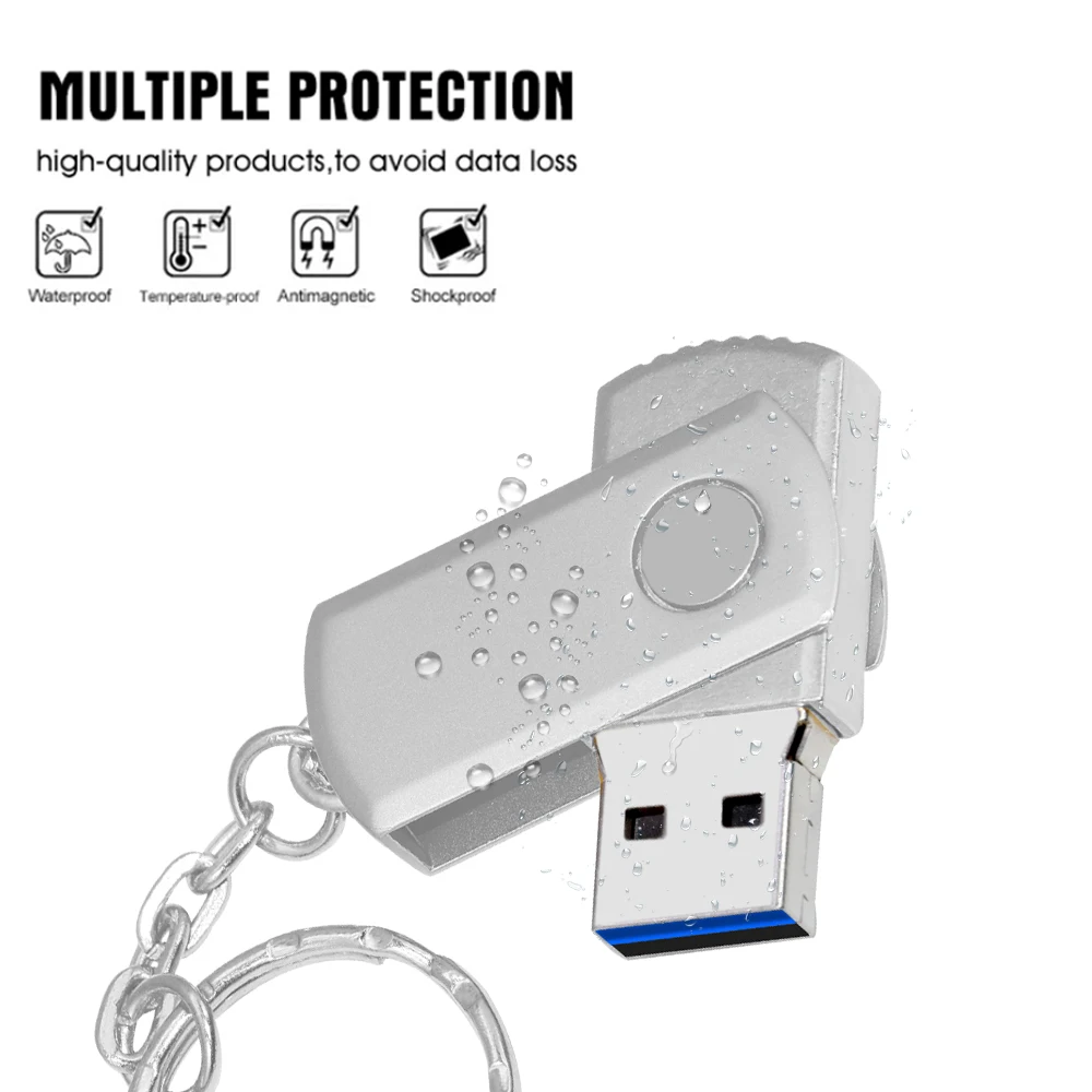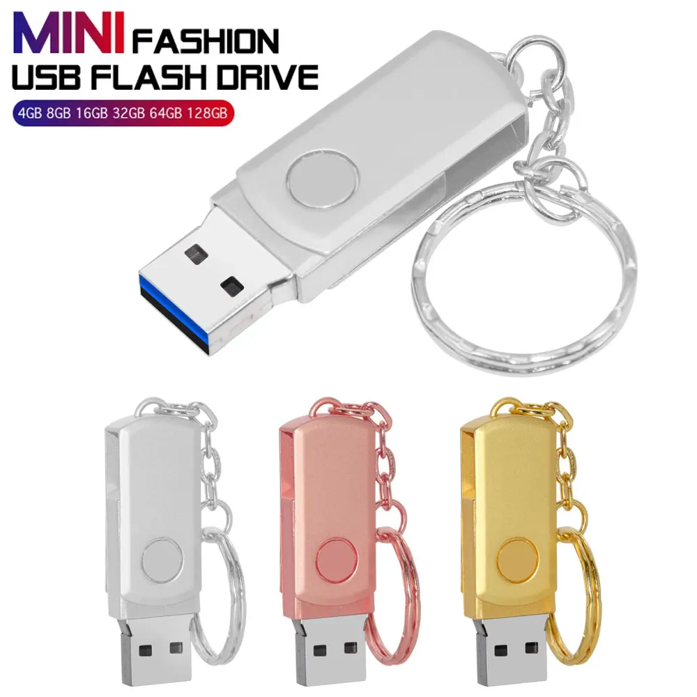 Comprar Unidad Flash USB 100 de acero inoxidable, Pendrive con llavero, rotación de 3,0 GB, 16GB, 32GB, 64GB, 128 piezas