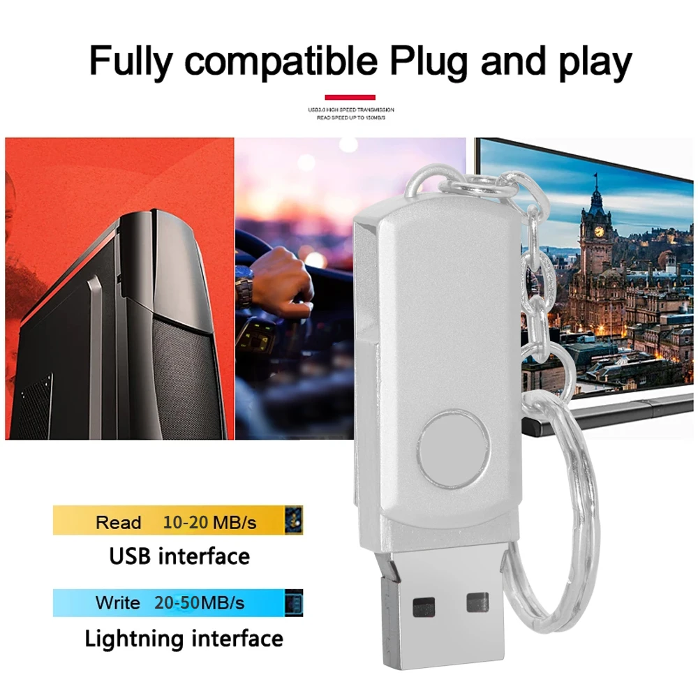 Comprar Unidad Flash USB 100 de acero inoxidable, Pendrive con llavero, rotación de 3,0 GB, 16GB, 32GB, 64GB, 128 piezas