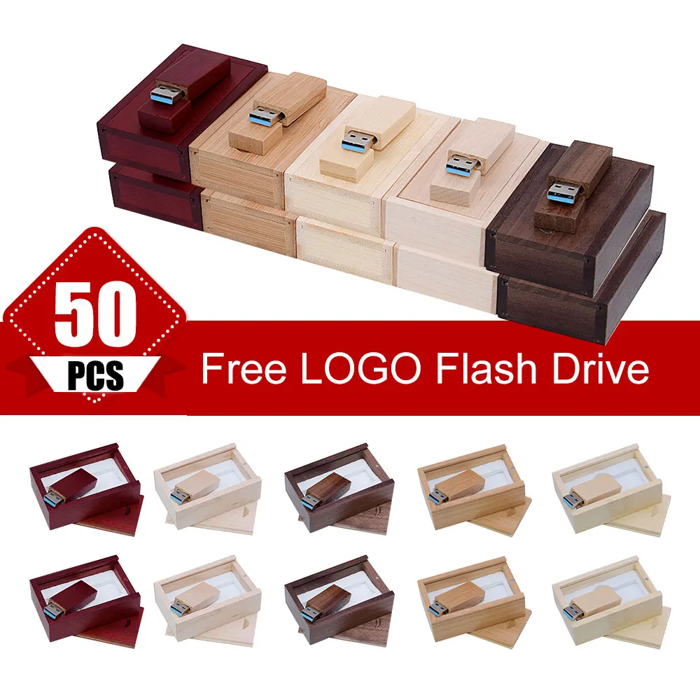 Comprar Unidad Flash USB 128 de madera con logotipo gratis, Pendrive con caja de regalo, 4GB, 8GB, 16GB, 32GB, 64GB, 3,0 GB, 50 piezas