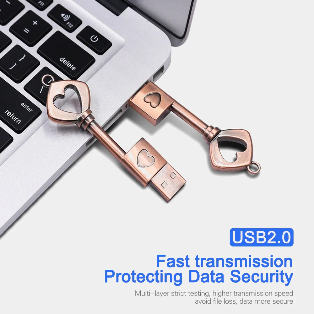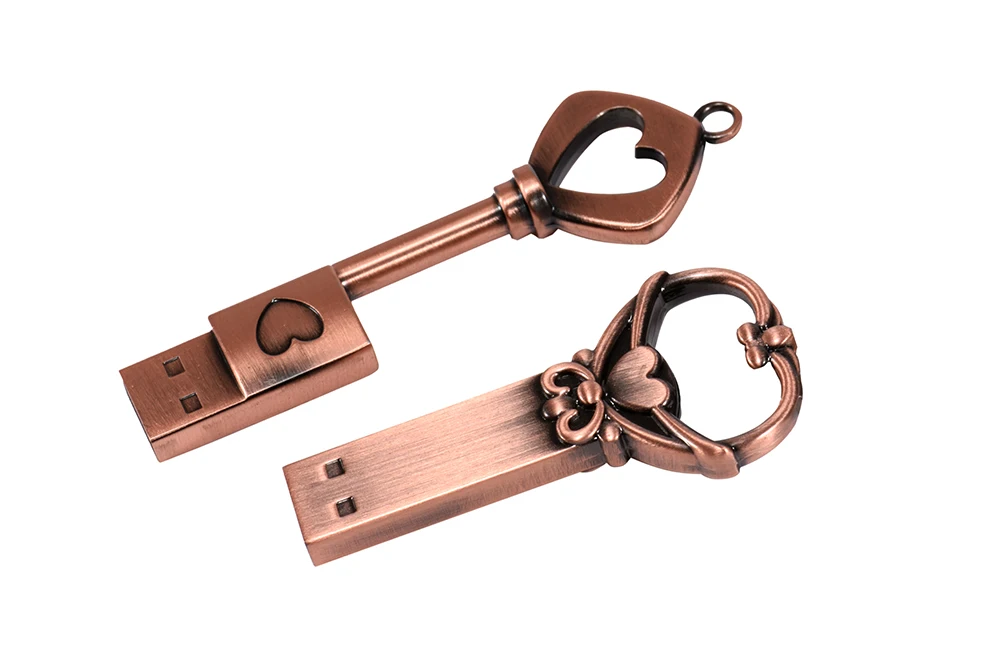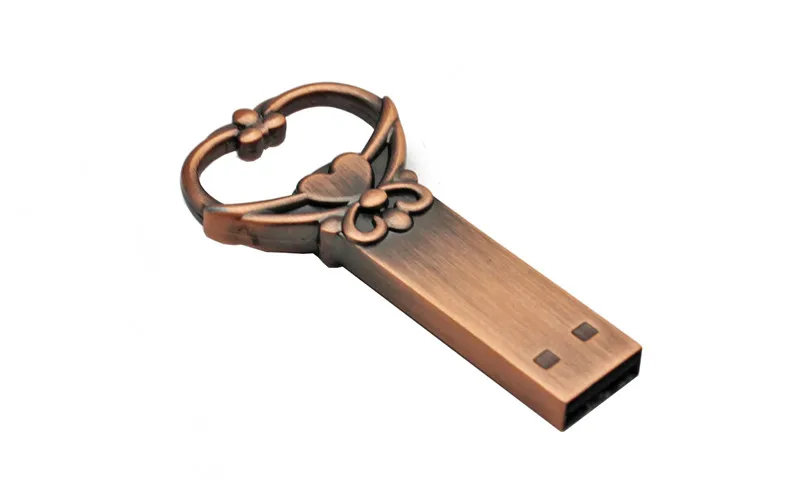 Unidad flash USB 2,0 con llave de Metal creativa Retro, unidad de bolígrafo con forma de corazón, 20 unidades por lote, regalo de negocios a la moda, disco U de 64GB, 32GB y 16GB