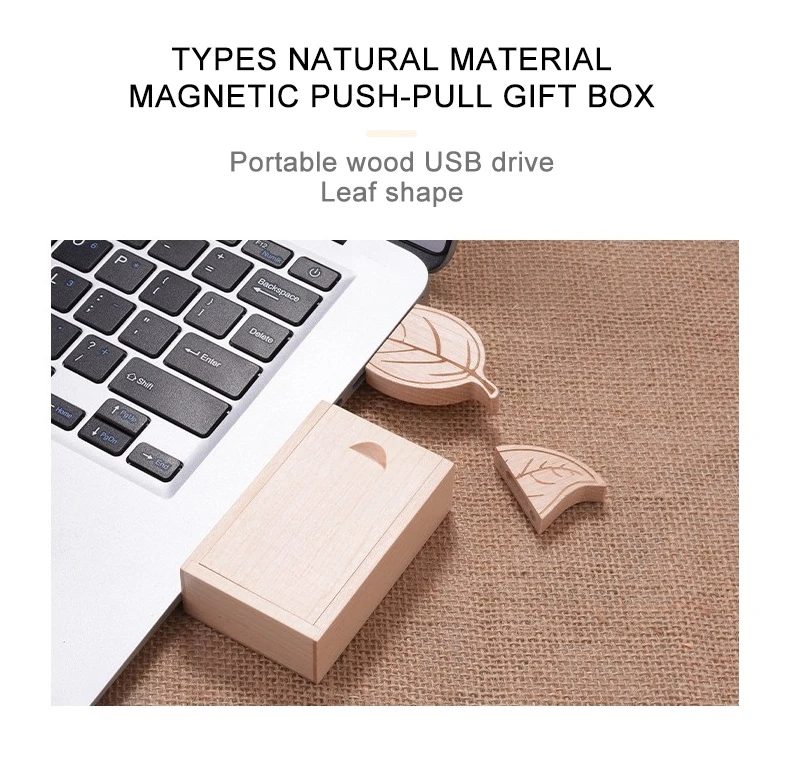 Unidad flash USB 2,0 de madera, unidad de bolígrafo con hojas, caja de madera, memoria, regalo creativo de boda, palo USB, bonito colgante, 64GB, 32GB, 16GB, para ordenador portátil, disco U, 8GB, madera de arce, madera de nogal, almacenamiento externo, 4GB