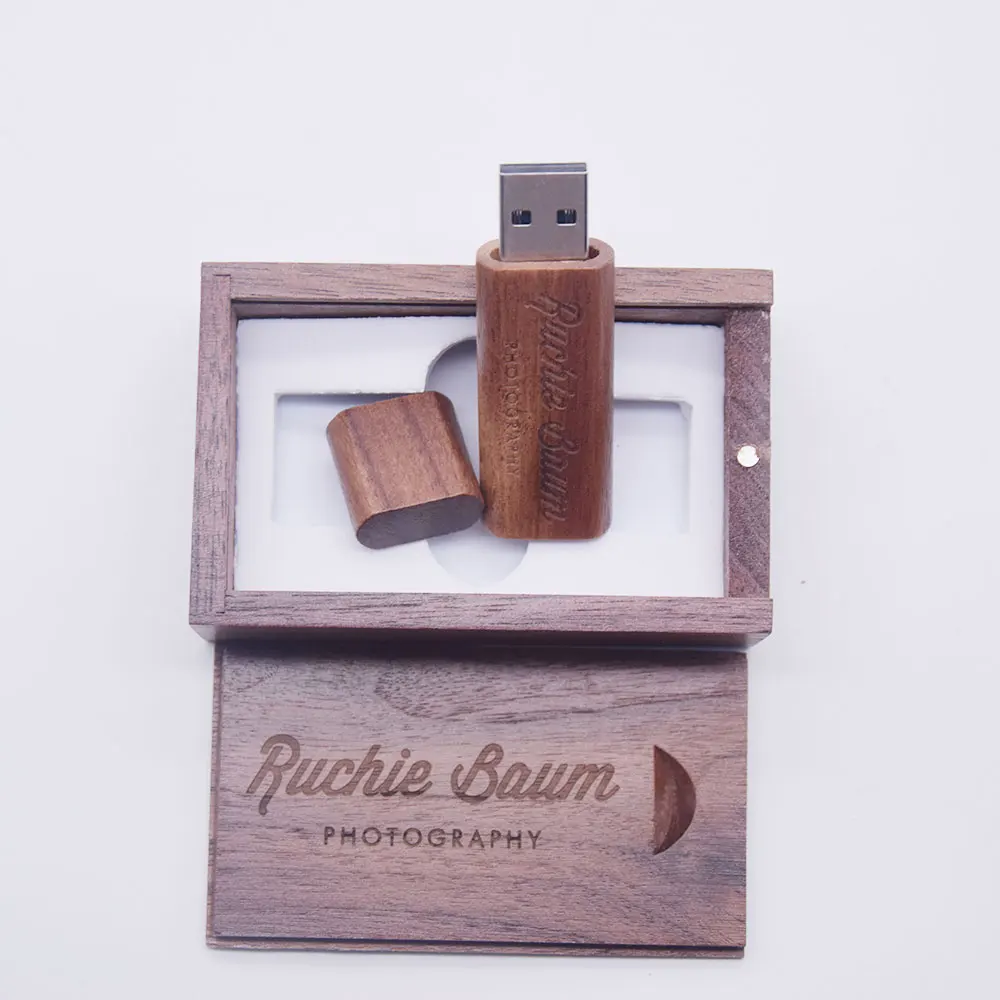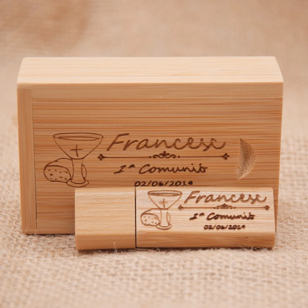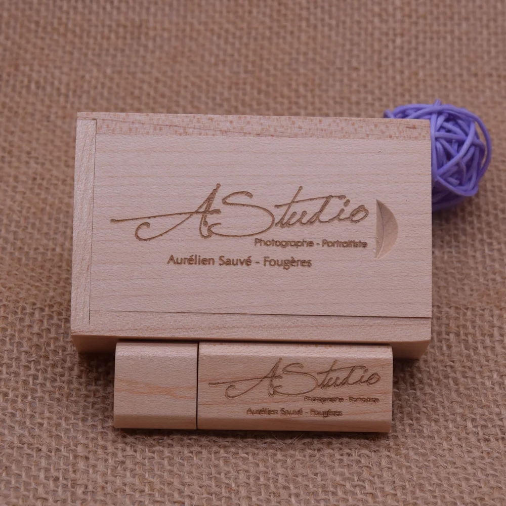 Comprar Unidad Flash USB 2,0 con caja de madera, pendrive con logotipo personalizado gratis, 128GB, 64GB, 32GB, regalo de boda para fotografía, 10 unidades por lote