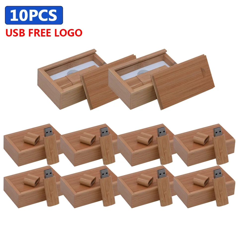 Comprar Unidad Flash USB 2,0 con caja de madera, pendrive con logotipo personalizado gratis, 128GB, 64GB, 32GB, regalo de boda para fotografía, 10 unidades por lote