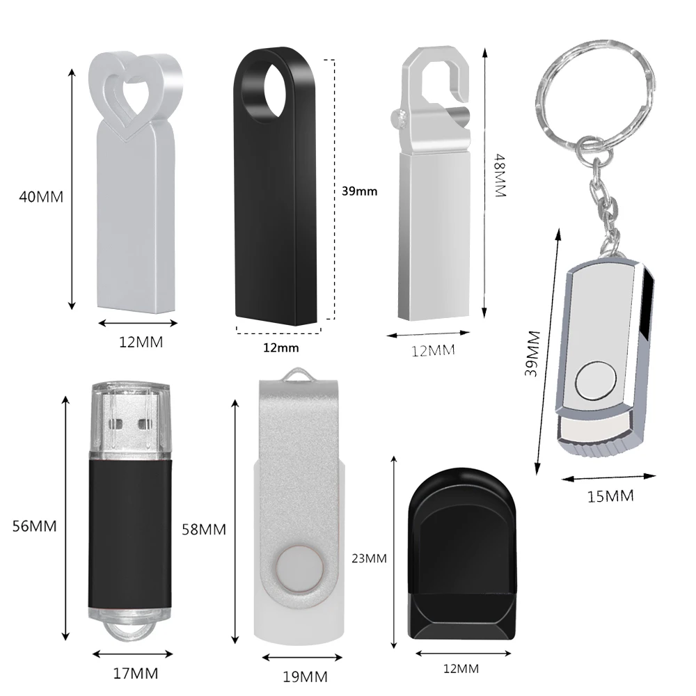 Comprar Unidad Flash USB 2,0 de Metal, Pendrive con llavero, logotipo gratis, 16GB, 32GB, 64GB, 10 unidades por lote