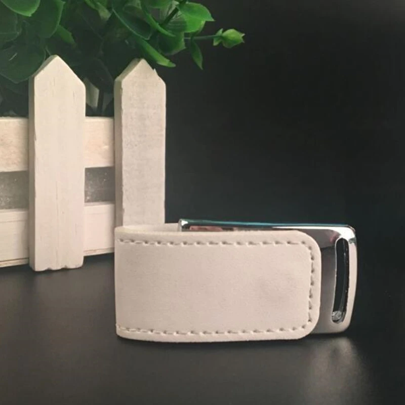 Comprar Unidad Flash USB 3,0 de alta velocidad, memoria USB 128 de cuero blanco con logotipo personalizado gratis, 4GB, 8GB, 16GB, 32GB, 64GB y GB, con caja de Metal