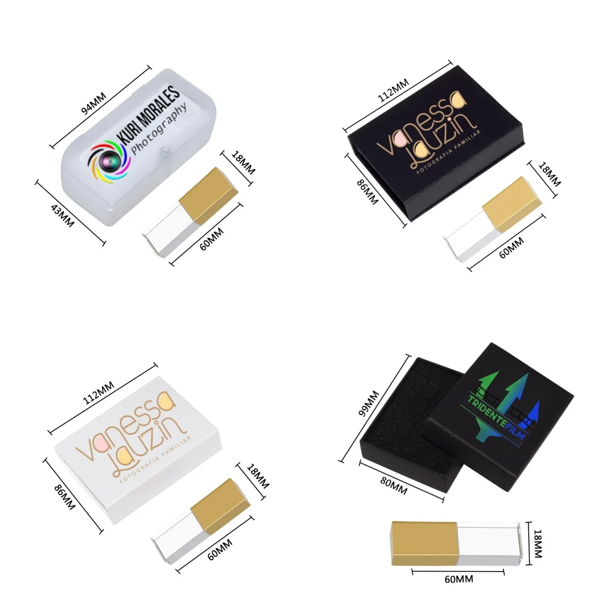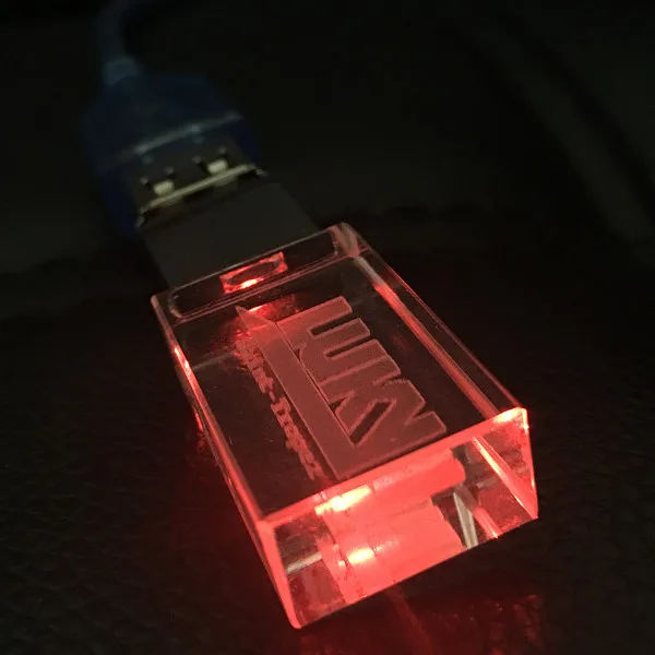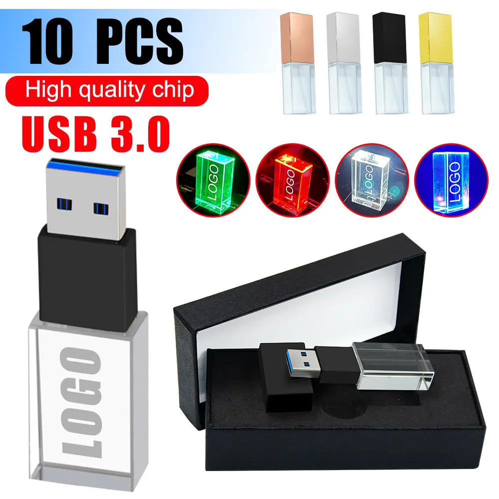 Comprar Unidad Flash USB de cristal de 128GB, unidad de bolígrafo con logotipo personalizado gratuito, 64GB con caja, memoria con luz LED, 3,0, 32GB, 16GB, regalo creativo, 10 Uds.