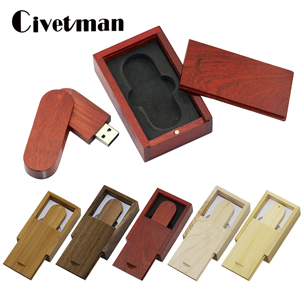 Comprar Unidad Flash USB de madera, pendrive de madera de Arce, rectángulo giratorio con caja de 128GB, 64GB, 32GB, 16GB, 8GB, 4GB, 256GB, memoria USB 2,0