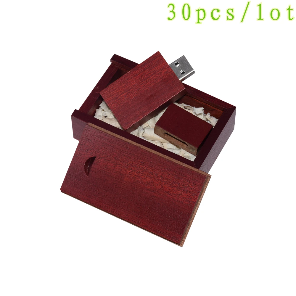Comprar Unidad flash USB de madera personalizada para fotografía, pendrive con caja 2,0, 4GB, 8 GB, 16GB, 32GB, 64GB, regalo de negocios, 30 piezas gratis