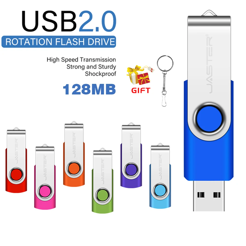 Unidad Flash USB de menor capacidad uniforme, llavero colgante de Metal giratorio de 128MB, regalo de negocios, memoria de plástico colorida 2.0PROBLEMAS POSTVENTA: