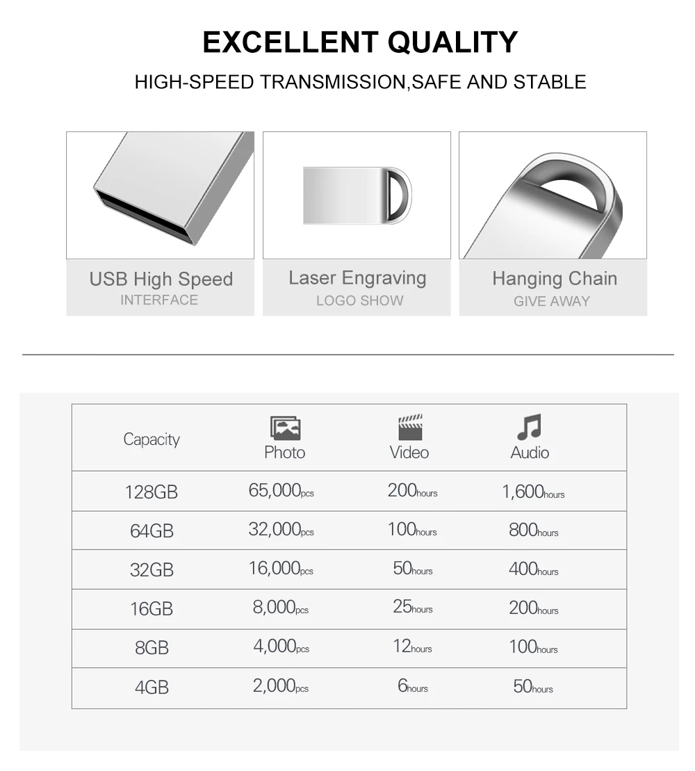 Unidad flash USB de metal 2.0 Mini Flash Pendrive 128GB 64GB 32GB 16GB Cle USB 2.0 Stick 64GB 128GB Dispositivos de llavero de almacenamiento USB para unidad de bolígrafo para computadora portátil