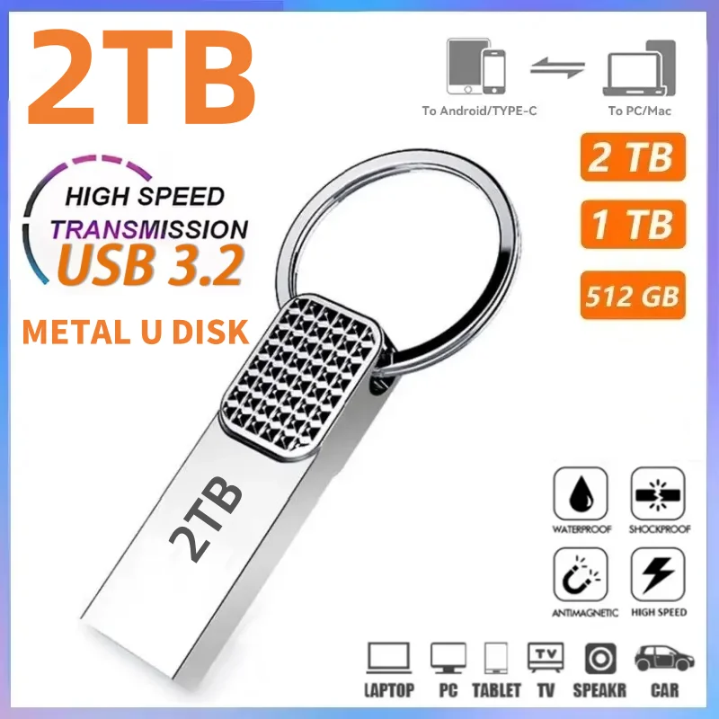 Unidad flash de Metal con memoria USB 3,2 de 2 TB, unidad portátil de alta velocidad, 1 TB y 512 GB, memoria impermeable, disco Flash USB