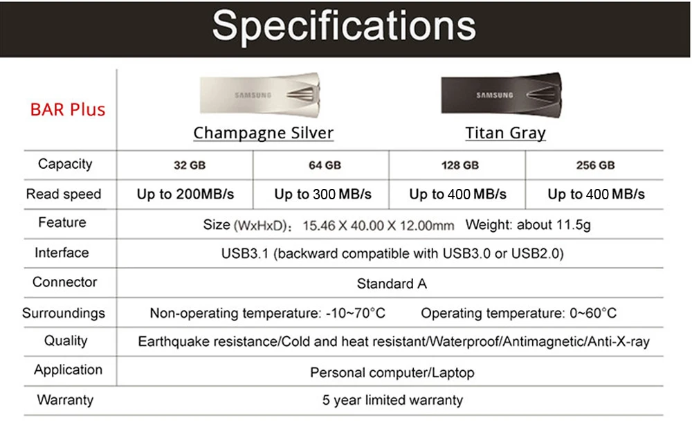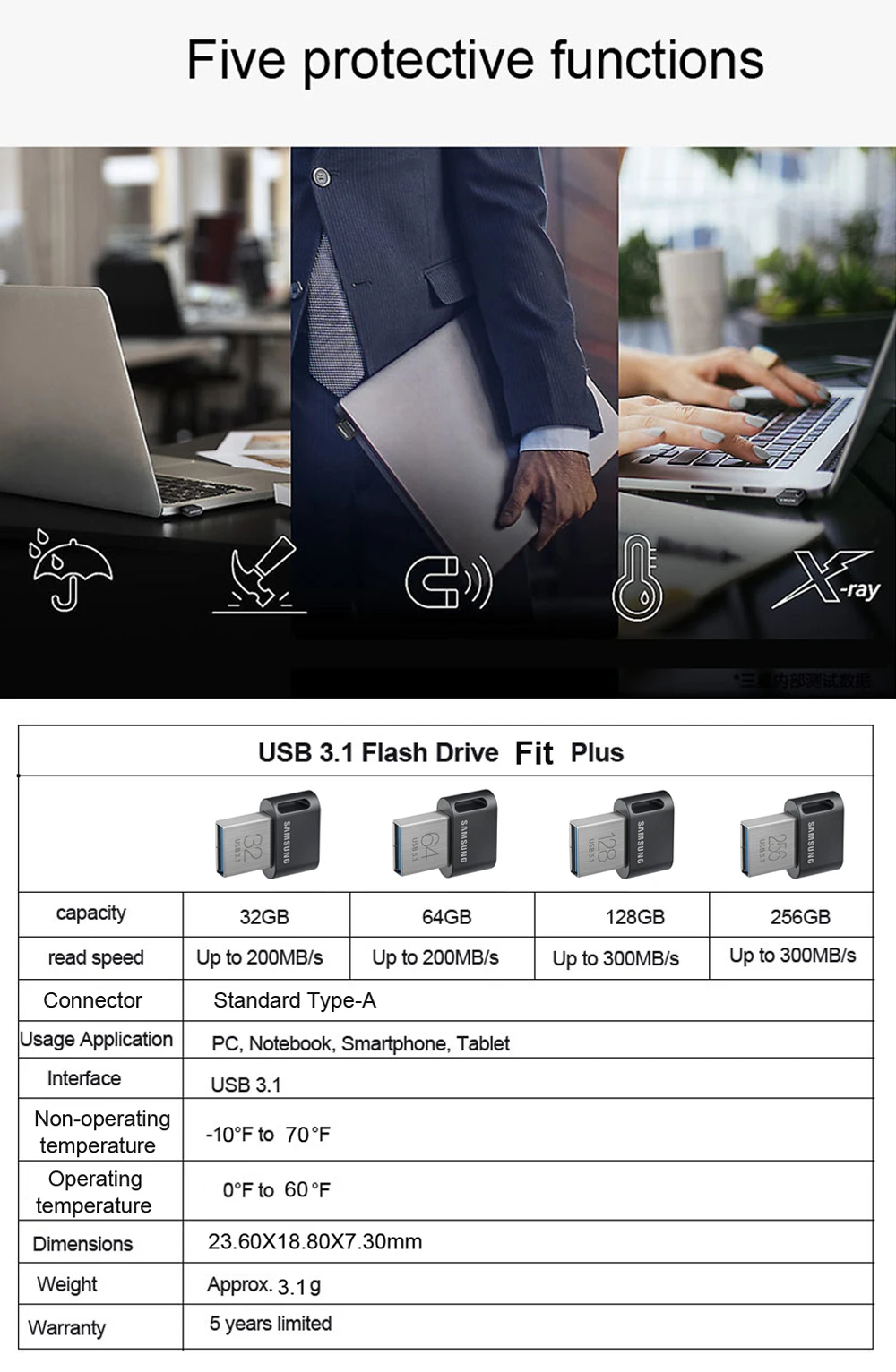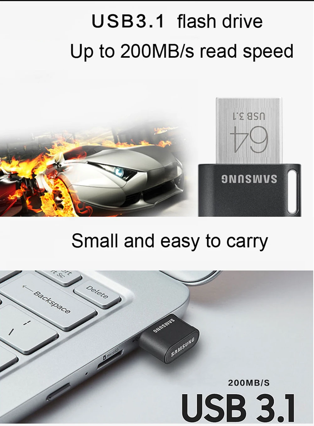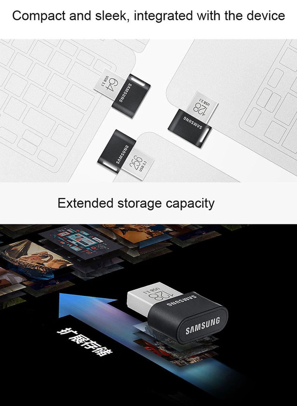 Comprar Unidad flash USB Samsung 64GB 128GB 256GB USB 3.1 Mini Pen Drive Memory Stick Dispositivo de almacenamiento Disco U Velocidad de lectura de hasta 400 MB/s